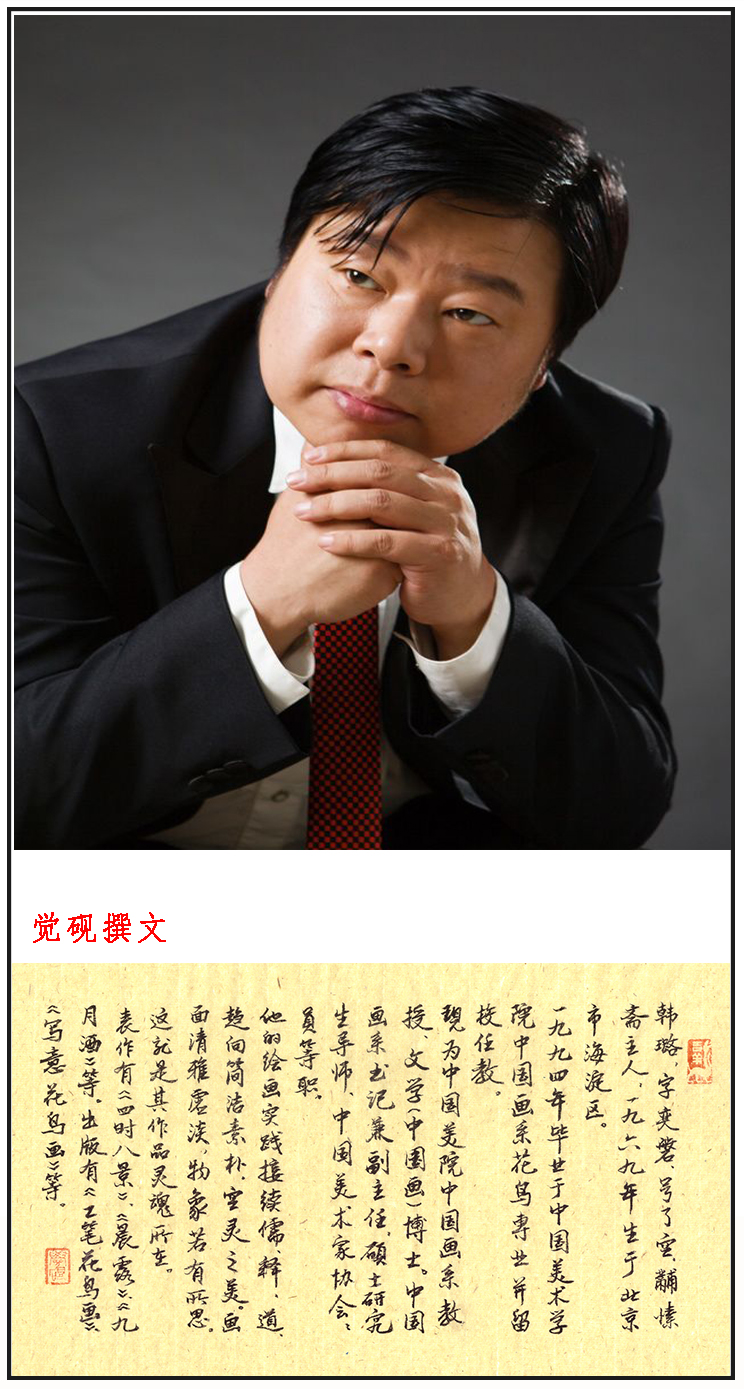 韩璐,字奕磐,号了空,黼愫斋主人。1969年生于北京市海淀区, 1985年毕业于北京医学院附中,1988年毕业于北京实用美术学校,1994年毕业于中国美术学院(原浙江美术学院)中国画系花鸟专业并留校任教。现为中国美术学院中国画系教授,文学(中国画)博士。中国画系书记兼副主任,硕士研究生导师;中国美术家协会会员,浙江省侨联委员,杭州市第十届青联常委,曾任中国美术学院继续教育学院副院长、浙江省第九届青联委员。现已出版个人专著26部,发表论文11篇,多次于国内外举办个人画展及参加学术邀请展,作品多被国内外收藏家、政府机构收藏。
