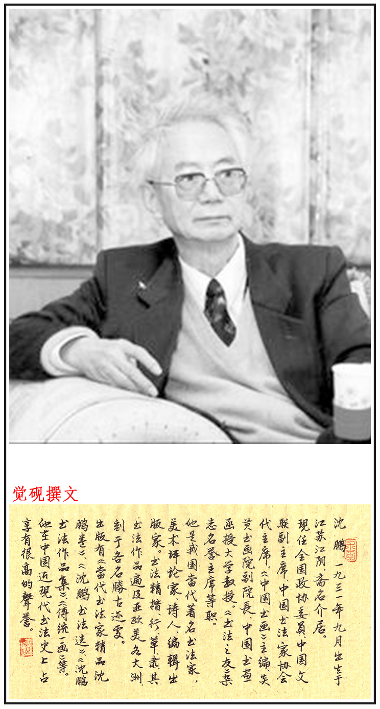 沈鹏,1931年出生,江苏省江阴市人。书法家、美术评论家、诗人。中国文学艺术界联合会第十届荣誉委员。 [1]