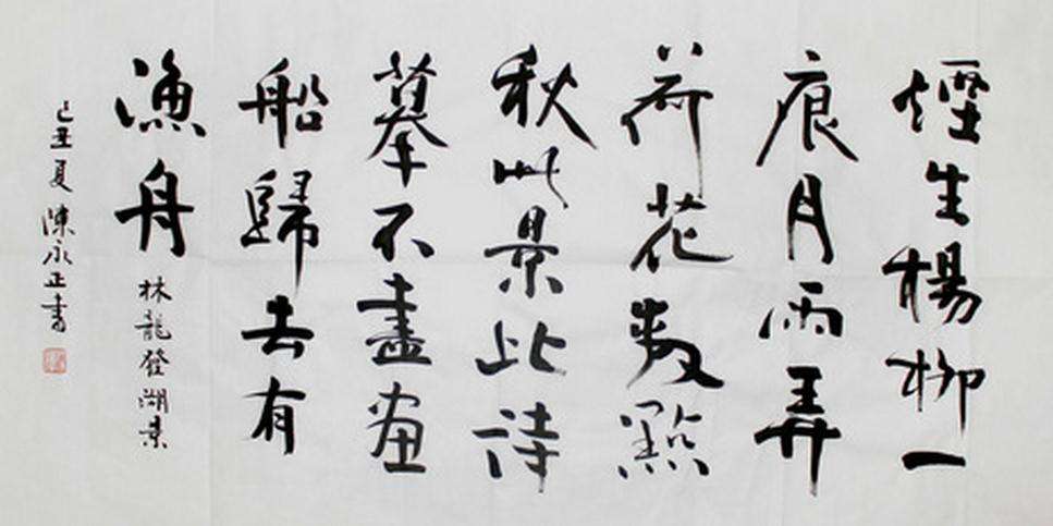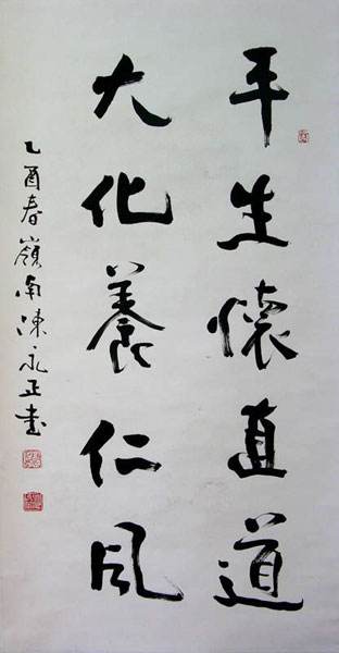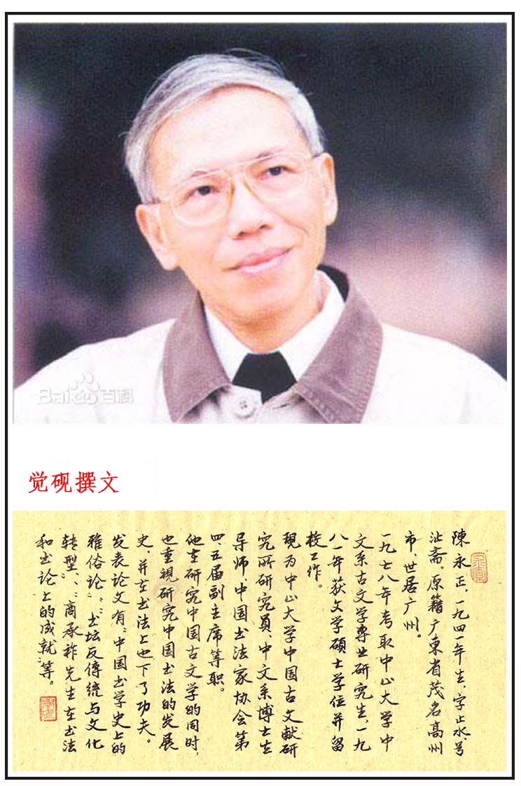陈永正(1941.12— ),字止水,号沚斋。男,原籍广东省茂名高州市,世居广州。1962年毕业于华南师范大学中文系,任广州市第三十六中学语文教师。1978年考取中山大学中文系古文字专业研究生,1981年获文学硕士学位,留校工作。现为中山大学中国古文献研究所研究员、中文系博士生导师,中山大学——香港中文大学华南文献研究中心主任,中山大学岭南文献研究室主任,中国书法家协会第四、五届副主席,广东省书法家协会名誉主席,中华诗教学会会长。