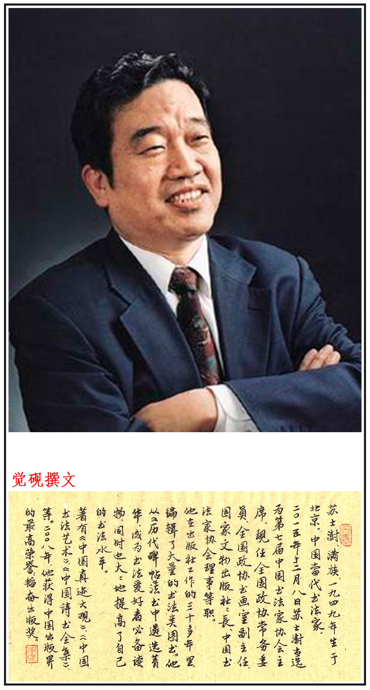 苏士澍,1949年3月生于北京,满族,中国当代书法家。2015年12月8日苏士澍当选第七届中国书法家协会主席。中国文学艺术界联合会第十届荣誉委员。 [1-3]