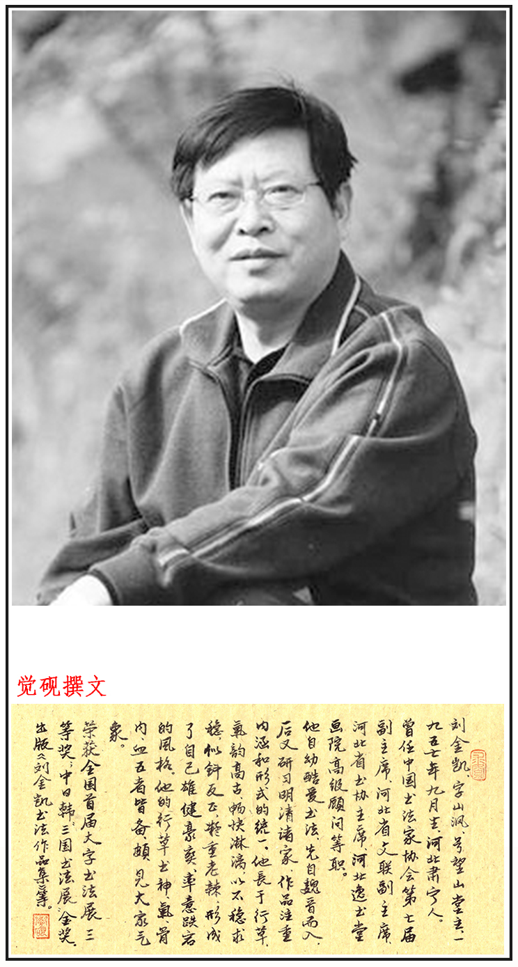 刘金凯,字山沨,号望山堂主,1957年9月生,河北肃宁人。编审。现任任中国书法家协会第七届副主席,河北省文联党组副书记,河北省文联副主席,河北省书协主席,河北省书协行书委员会主任、组织工作委员会主任、 河北逸书堂书画院高级顾问。