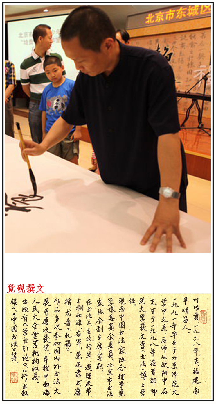 叶培贵,1968年生,福建南平顺昌人。1991年本科毕业于北京师范大学中文系,后师从欧阳中石先生于1998年在首都师范大学获文学(书法)博士学位。首都师范大学教授、博士生导师,2003年—2007年任中国书法文化研究院院长,现为中国书法家协会理事兼学术委员会委员、中国美术馆专家委员会书法艺术工作组专家成员、中国宋庆龄基金会理事、北京市书法家协会副主席、北京大学书法研究所和中南大学艺术学院兼职教授,北京唐风美术馆特约书法家。 甘肃书法院艺术顾问,中华书画名家研究院顾问,担任首届中国出版政府奖图书奖评委、文化部第十四届群星奖决赛评委、中国美术馆当代名家书法提名展艺术委员会委员,入选北京市委宣传部“文艺人才百人工程”、北京市青年骨干教师。九三学社第十四届中央委员会委员。 [1] 北京市第十五届人民代表大会代表。