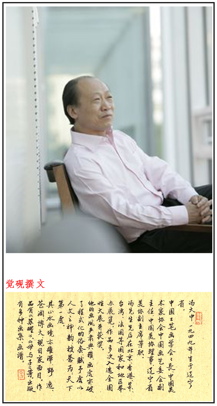 冯大中,1949年生于辽宁省。第十、十一、十二届全国人大代表 ,中国工笔画学会会长,中国美术家协会中国画艺委会副主任,中国画学会副会长,中国美术家协会理事,辽宁省美协副主席,国家一级画家,享受国务院特殊津贴专家。