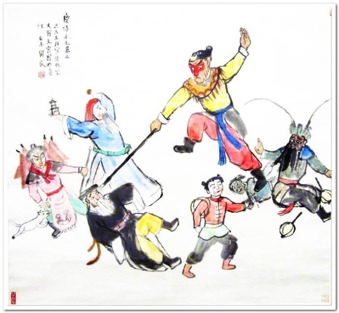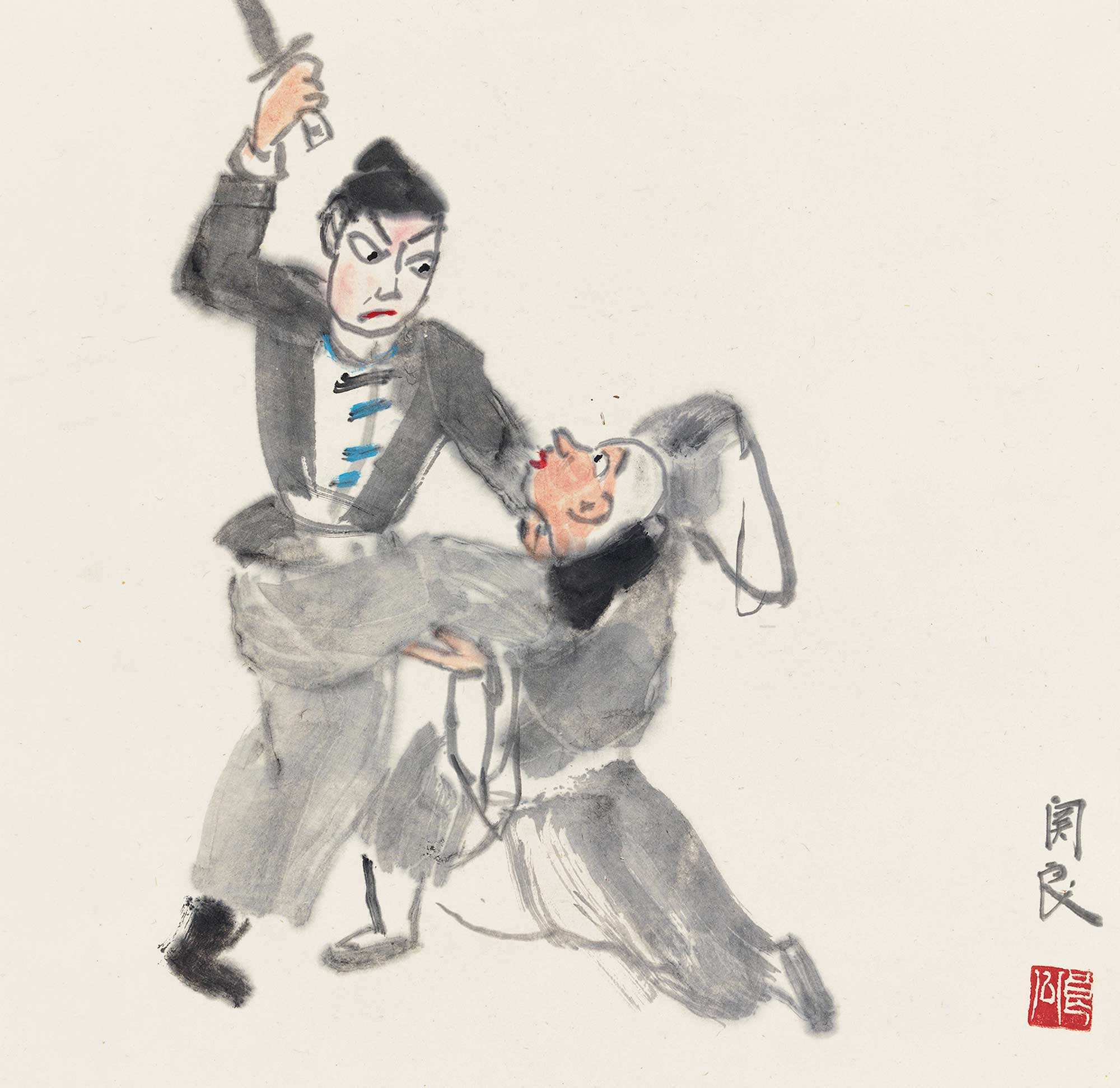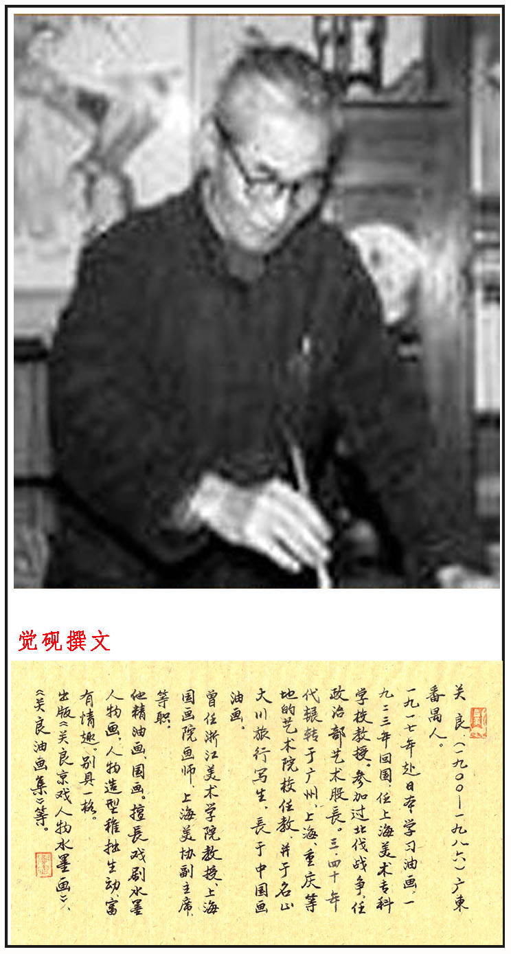 关良(1900--1986),字良公。生于广东番禺, 1917年赴日本学习油画,1923年回国,任上海美术专科学校教授,参加过北伐战争,任政治部艺术股长,30~40年代辗转于广州、上海、重庆等地的艺术院校任教,并于名山大川旅行写生,长于中国画、油画。曾任浙江美术学院教授、上海中国画院画师。著《关良艺事随谈》、《关良回忆录》。出版《关良京戏人物水墨画》、《关良油画集》等。