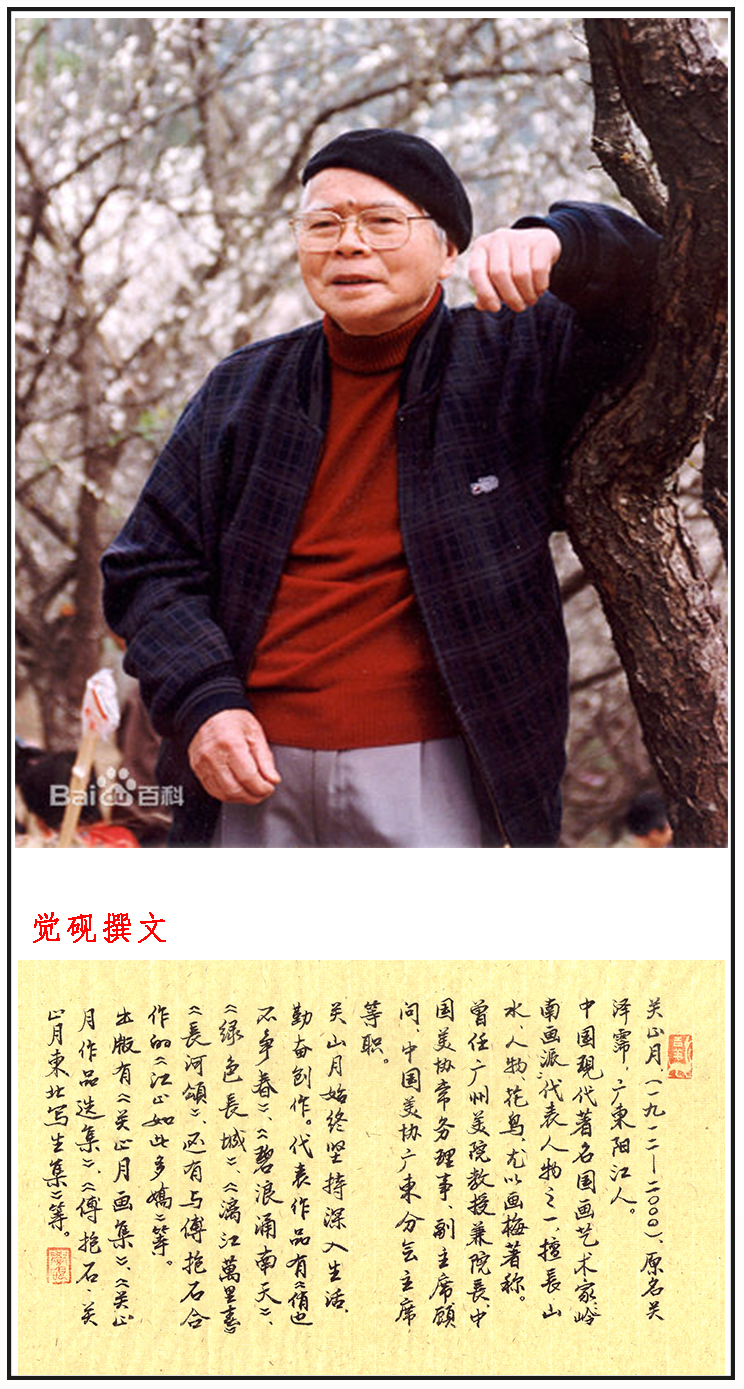 关山月(1912.10.25——2000.07.03),原名关泽霈,1912年生于广东阳江。著名国画家、教育家。岭南画派代表人物。曾拜师“岭南画派”奠基人高剑父。1948年任广州市艺专教授。1958年后,历任广州美术学院教授兼院长,广东艺术学校校长,广东画院院长等职。中国美术家协会副主席、常务理事,广东省文联副主席,广东省美术家协会副主席。