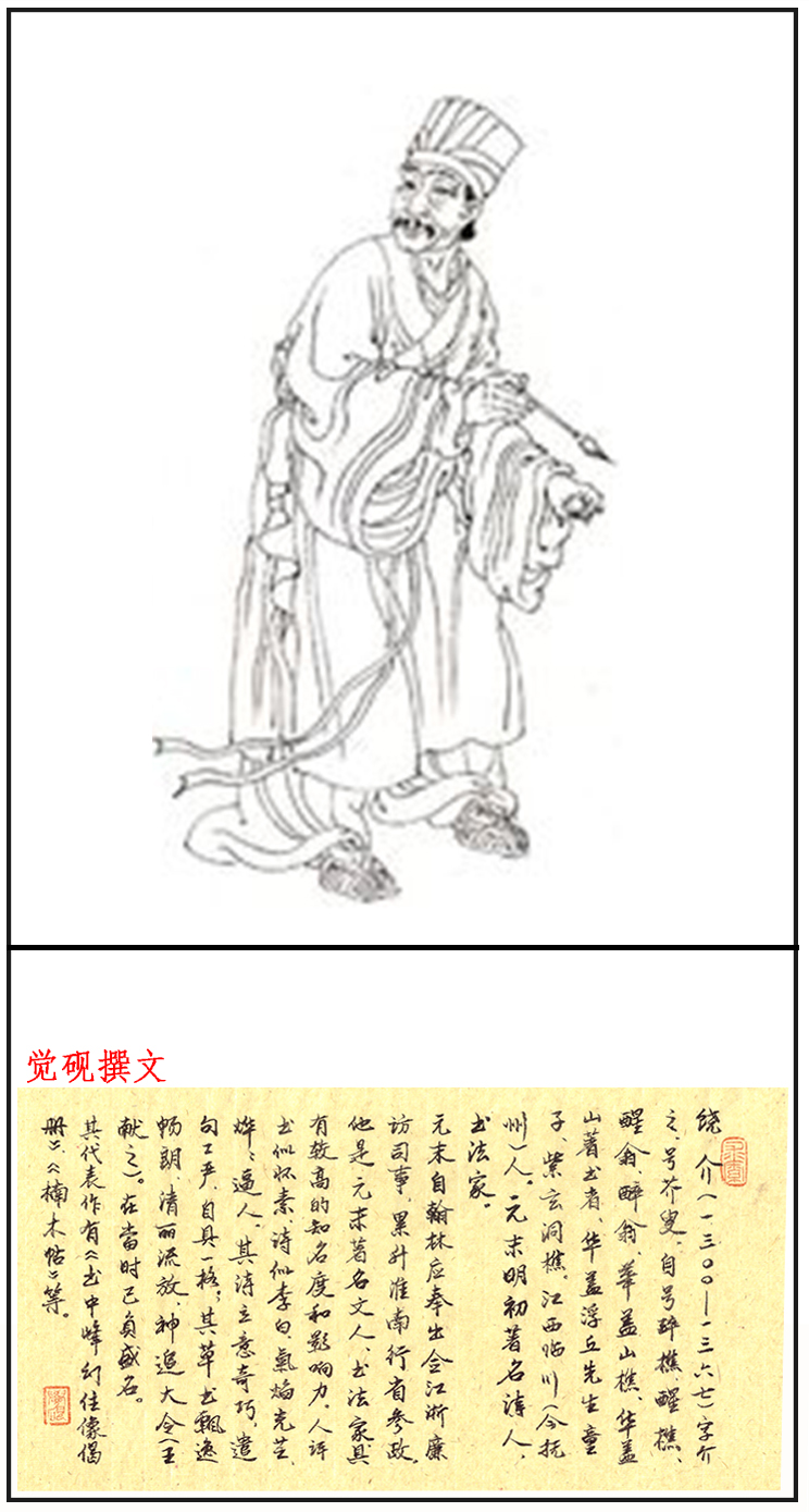 饶介(1300-1367)字介之,号芥叟,自号醉樵、醒樵、醒翁、醉翁、华盖山樵、华盖山著书者、华盖浮丘先生童子、紫玄洞樵。江西临川(今抚州)人。元末明初著名诗人、书法家。书迹有《杂诗帖》、《琴珍帖》、《仿四家书》等。