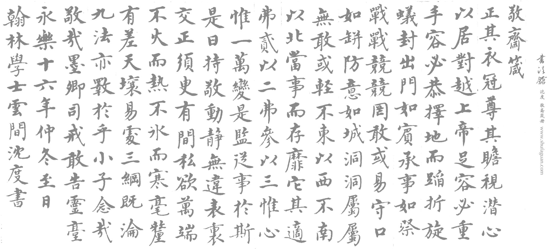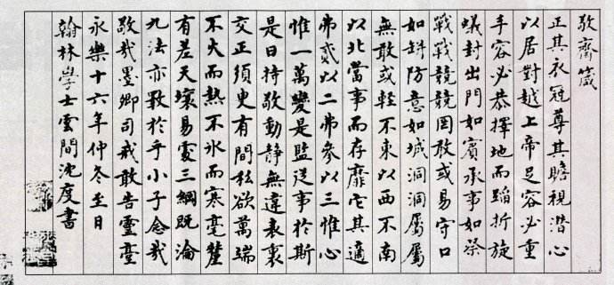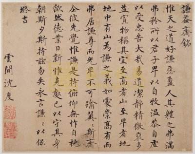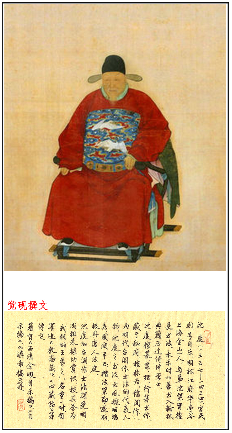 沈度擅篆、隶、楷、行等书体,藏于秘府,被称为“馆阁体”,为明代台阁体书法的代表人物。