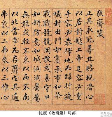 沈度,(1357-1434),明代书法家,字民则,号自乐。明松江府华亭(今上海金山)人,与弟沈粲皆擅长书法。永乐时以善书入翰林。由典籍历迁侍讲学士。