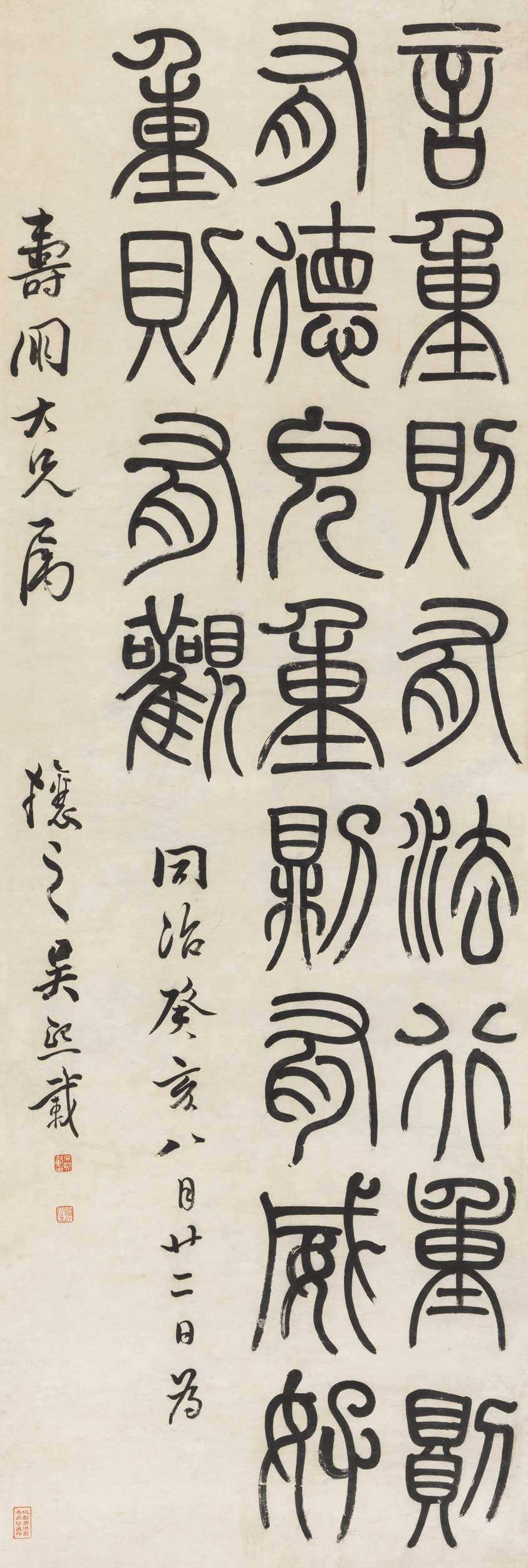 吴熙载(1799-1870),原名廷扬,字熙载,后以字行,改字让之,亦作攘之,号让翁、晚学居士、方竹丈人等。江苏仪征(今扬州)人。清代篆刻家、书法家。包世臣的入室弟子。善书画,尤精篆刻。少时即追摹秦汉印作,后直接取法邓石如,得其神髓,又综合自己的学识,发展完善了“邓派”篆刻艺术,在明清流派篆刻史上具有举足轻重的地位。