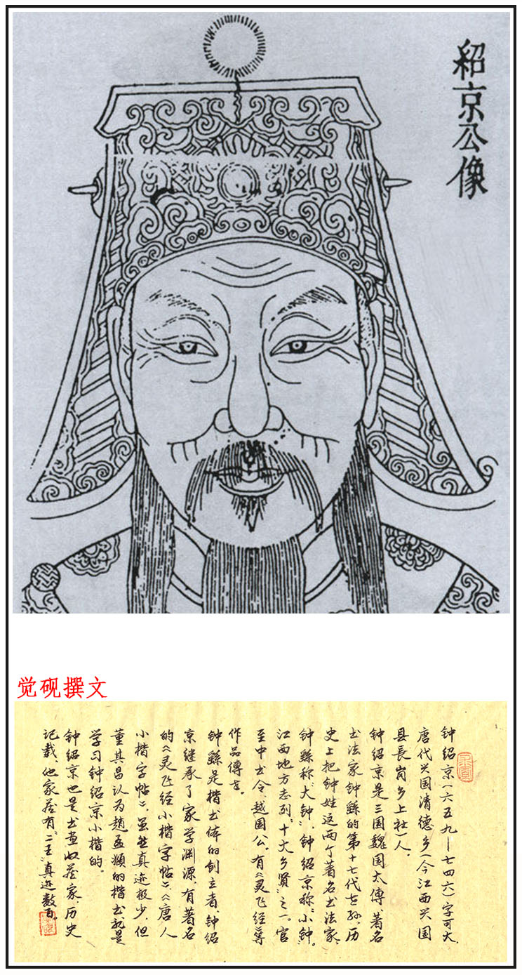 钟绍京(公元659年-公元746年),字可大,唐代兴国清德乡(今江西兴国县长岗乡上社)人,江南第一宰相。系三国魏国太傅、著名书法家钟繇的第17代世孙,历史上把钟姓这两个著名书法家,钟繇称“大钟”,钟绍京称“小钟”。江西地方志列“十大乡贤”之一。官至中书令,越国公。有《灵飞经》等作品传世。为纪念唐代江南第一宰相钟绍京,钟氏后人于清嘉庆八年(1803年)修建的“越国公祠”显示了江南第一宰相钟绍京钟氏家族名望的显赫与迁徙的源流。