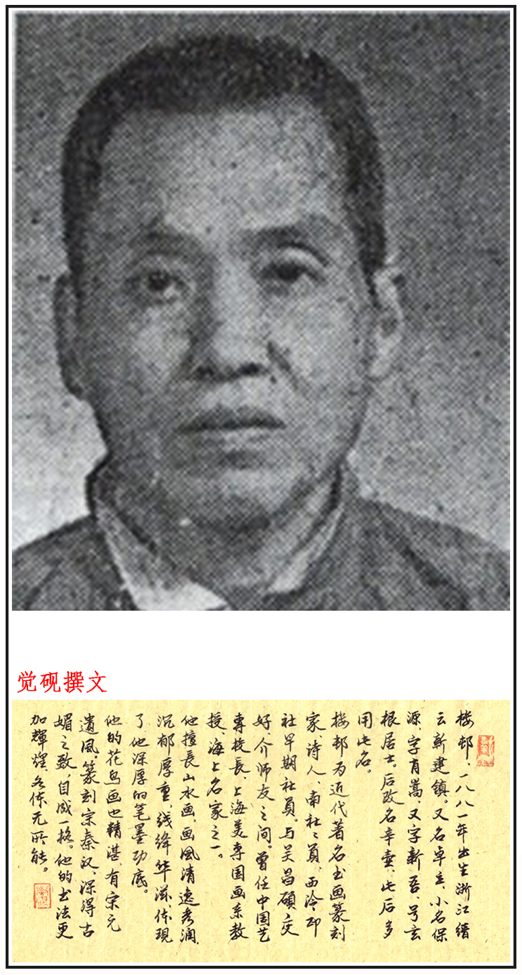 楼邨(1881—1950),又名卓立、小名保源,字肖嵩、又字新吾,号玄根居士、麻木居士、玄道人、玄朴居士、玄璞居士、缙云老叟。与吴昌硕交好,介师友之间。吴氏为之改名辛壶(与新吾谐音),此后多用此名。斋称玄根廎。浙东缙云人。