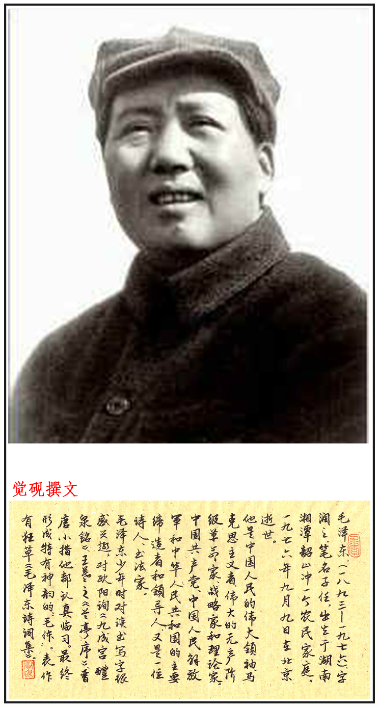 毛泽东(1893年12月26日-1976年9月9日),字润之(原作咏芝,后改润芝),笔名子任。湖南湘潭人。中国人民的领袖,马克思主义者,伟大的无产阶级革命家、战略家和理论家,中国共产党、中国人民解放军和中华人民共和国的主要缔造者和领导人,诗人,书法家。