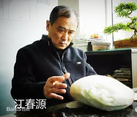 江春源,男,1947年出生,1963年参加工作,至今在扬州玉器厂工作。先后从事玉器制作、设计等工作。国家级非物质文化遗产传承人30多年来,江春源坚持自学,深入生活,不断吸取中国画等姐妹艺术之长,将其融合,运用于玉雕创建设计之中,形成了自己独特的艺术风格。他设计的花卉、鸟兽、炉瓶及其他玉器杂件,生活气息浓厚、产品造型生动。在设计题材构思和技法上,他突出了传统造型手法,把诗、书、画、印融为一体,采用浮雕手法,立体地在玉雕产品上展现出来,使传统古朴的玉瓶、玉壶等增添了秀美清新的特色。