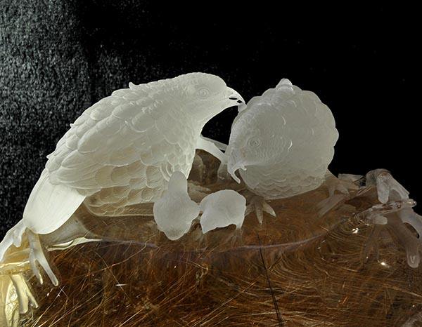 沈德盛:1962年2月1日出生,男,籍贯上海。职称:高级技师从1999年开始建立上海水晶雕刻厂至今,培养了不少雕刻人才,遍及全国,其中不乏有佼佼者。尤其是从2011年受聘于云南省保山市龙陵县职业高中名誉校长开始,自费培训职中美术老师与玉雕班学生,并把其中两位专业老师带回上海工作室,吃住一起,授艺带教近一年,从理论到实践毫无保留全方位传授,培训后归校授教。并不定期的赴云南龙陵职中授课,应校方之请在校内成立了大师工作室,进行传帮带活动。紧接着又带回龙陵职中高材生返沪,继续进行免费义务授徒。同时在中国水晶之乡东海讲课,并陆续带学生回工作室义务培训多年,其中有一名90后学员荣获上海中级工艺美术师职称,是上海玉雕行业中最年轻的中级工艺师,还有学员回东海从事水晶雕刻工作,有的建立雕刻厂,有的成立工作室,作品多次荣获国内各种奖项,推动了当地水晶雕刻行业技术的整体提高。