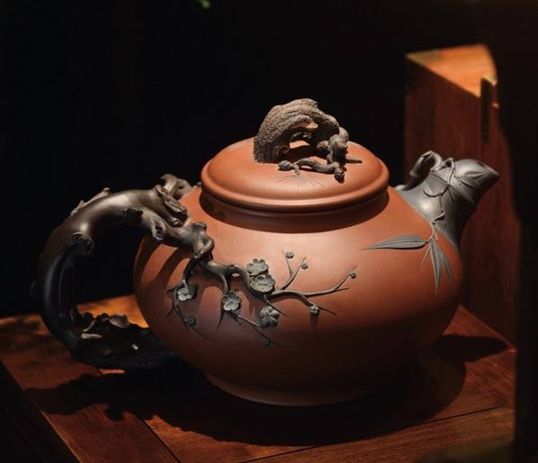 何道洪,生于1943年。拜师于王寅春门下,深得名师真传,练就制作方器、圆器与筋纹器等器形的扎实功底。而后并获素有“陈鸣远第二”之称的裴石民先生指导,琢磨花货及仿生蔬果的制作技艺。曾赴中央工艺美术学院修习陶瓷相关课程,深研造型、装饰设计,涵养创作美学。1958年进紫砂工艺厂,师从王寅春、裴石民学艺,1976年进中央工艺美院深造。二十世纪八十年代以来,多件作品被故宫博物馆、中南海紫光阁、香港茶具文物馆、中央工艺美院收藏或选作国家礼品。何道洪是一位难得的制作技术全面的紫砂陶艺家,熟悉掌握各种砂壶制作技法,深知泥料特性及配色学问,兼具丰富的制壶实务经验与美学理论基础,其作品有着独特的个人风格。所设计的砂壶稳重大方、精工细致,器形力度、动感十足,韵味深厚。于光素器圆润敦厚、气韵深蕴,筋纹器工精艺谨,花货细腻优雅。