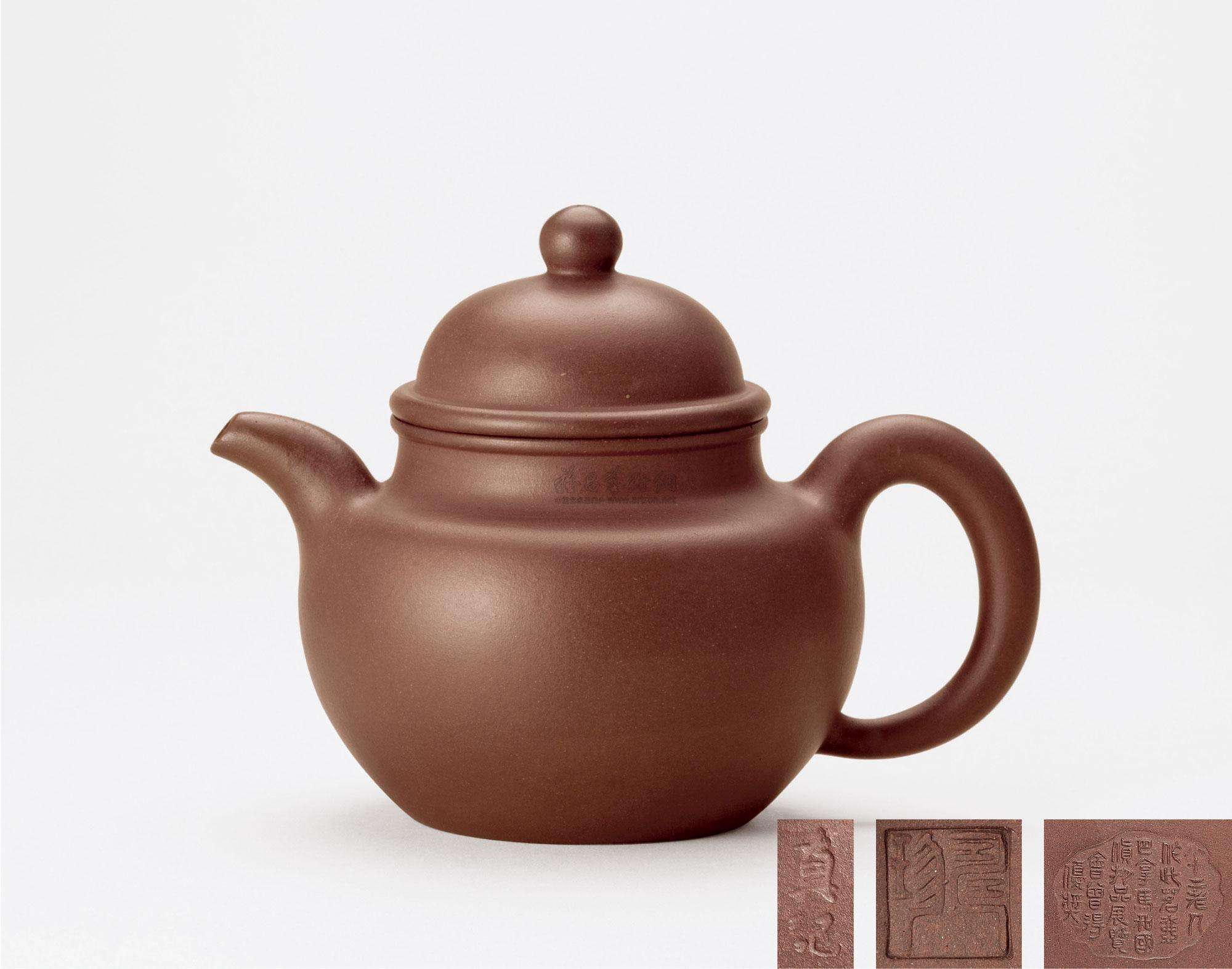 程寿珍(1858—1939年),又名陈寿珍,号冰心道人,清咸丰至民国初期的宜兴人,是一位勤劳多产的紫砂壶名家,师承其养父邵友庭,擅长制形体简练的壶式。作品粗犷中有韵味,技艺纯熟。所制的“掇球壶”最负盛名,壶是由三个大、中、小的圆球重叠而垒成,故称掇球壶。其造型以优美弧线构成主体,线条流畅,视觉感也极为舒适,整把壶稳健丰润。该壶于1915年在巴拿马国际赛会和芝加哥博览会得金奖,当时名重一时。