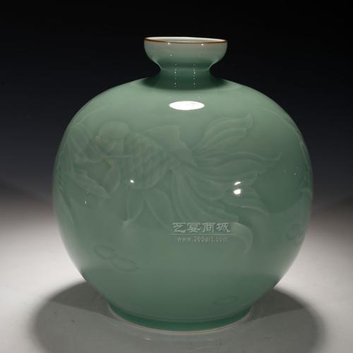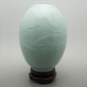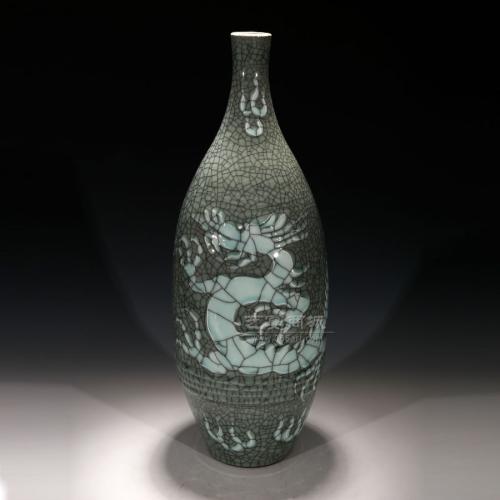 夏侯文(1935- ),男,江西省分宜县人,中国工艺美术大师,浙江省工艺美术大师。1963年毕业于景德镇陶瓷学院美术系,同年分配到龙泉瓷厂工作,从事青瓷产品的设计和工艺研究工作。夏候文的理论基础扎实,有丰富的实践经验和深厚的艺术功底。他几十年来创作设计了大量作品,并屡屡获奖。代表作品有:《双鱼洗》、《仿古莲花碗》、哥窑《龙纹盘》等。他享受国务院政府特殊津贴。