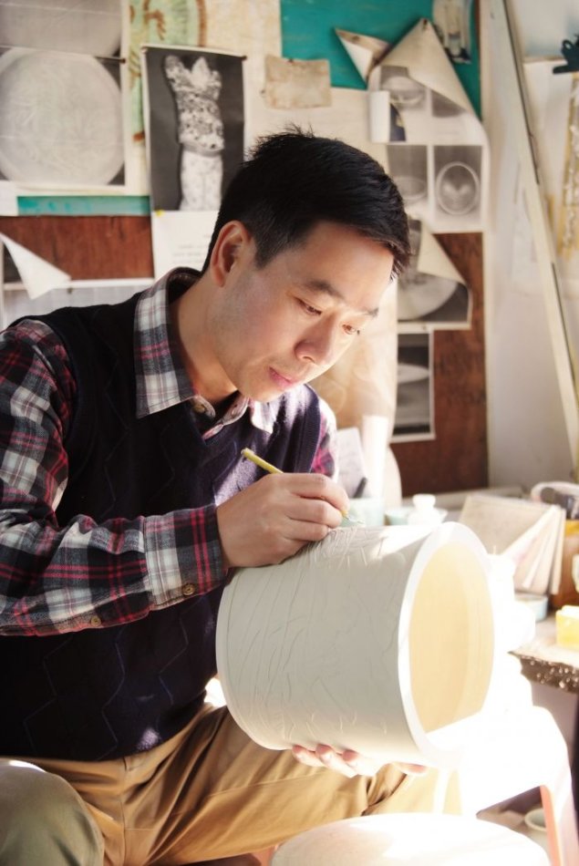夏侯辉,1972年生于青瓷世家,浙江省工艺美术大师,高级工艺美术师,浙江青瓷中青年十大名师之一,浙江省青瓷专业委员会委员。1991年毕业于河北轻工业学校陶瓷美术专业。作品造型丰富,装饰性强,图案丰富多姿,阴阳交错,层次分明,意气酣畅。常用技法有刻花、剔花、刮花等,刀法流畅俊健,线条简练生动,一气呵成。
