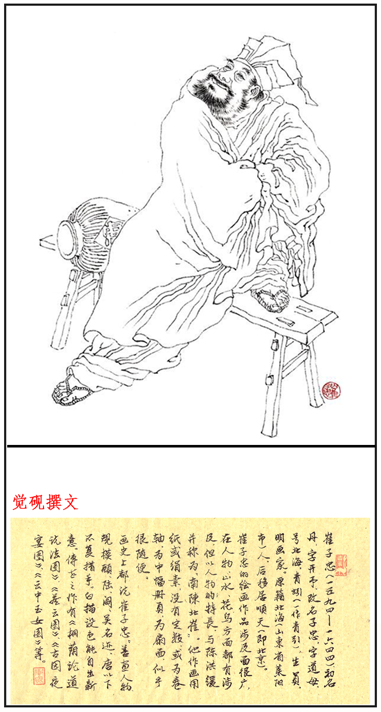 崔子忠(约1595年——1644年),崔子忠可以说是一位爱国画家,居住于顺天府(今北京),曾经师从董其昌。在农民起义军李自成的队伍攻入北京后,躲在自己的密室当中,后面因缺少粮食而饿死。善画人物,仕女,题材多佛画及传说故事,取法唐宋,颇具古意。 [1] 他在当时与陈洪绶齐名,有“南陈北崔”之称。