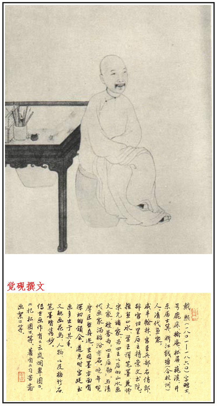 戴熙(公元1801-1860年),清代画家。字醇士,号鹿床、榆庵、松屏、莼溪、井东居士等,浙江钱塘(今杭州)人。咸丰翰林,官至兵部右侍郎,辞官归里后主持崇文书院。擅画山水,学王恽笔墨,兼师宋元诸家,尤善花卉及竹石小品,能治印,著有《习苦斋集》、《题画偶录》等。画作有《云岚烟翠图》、《忆松图》、《满门风华》等。