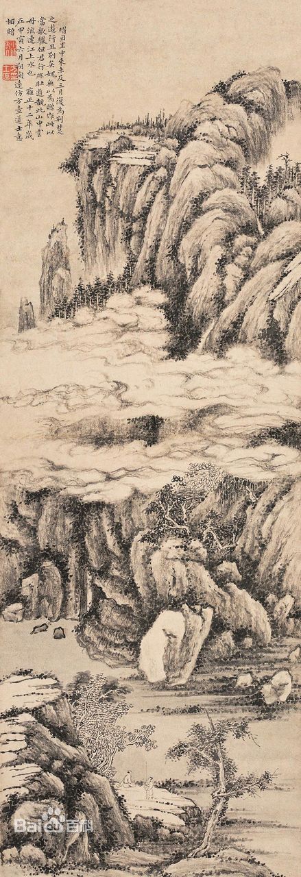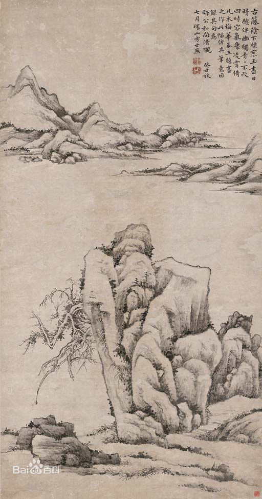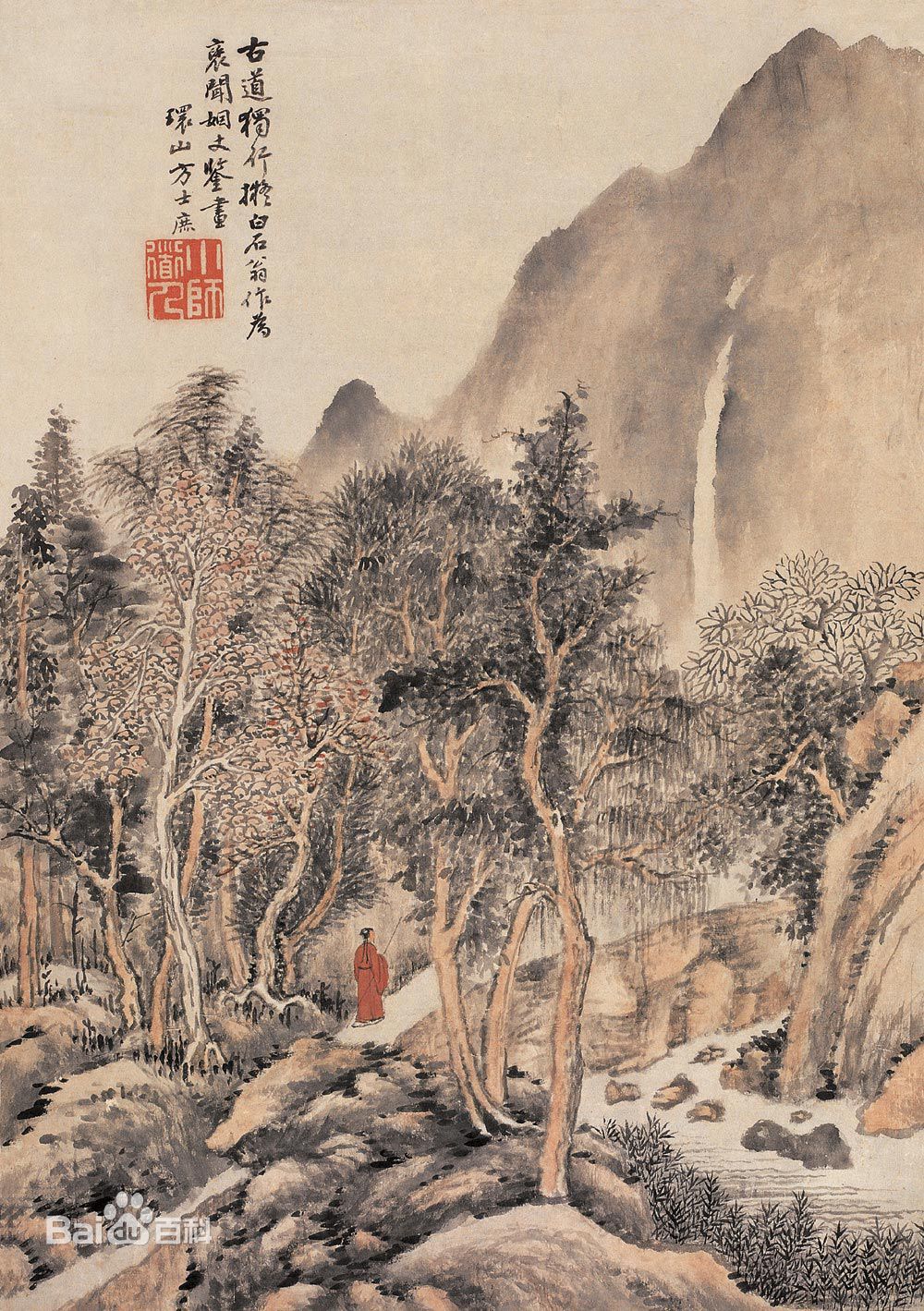 方士庶(1692—1751)字循远,一作洵远,号环山,又号小狮道人,一作小师道人,新安(今安徽歙县)籍,家维扬(今江苏扬州)。清代画家。能诗善画,书法严密端秀,绘画笔墨敏洁灵秀,气势跌宕飞动,谓之为王原祁后山水第一。受学于黄鼎,山水用笔灵敏,气晕骀宕,早有出蓝之目,时称妙品。兼善花卉写生。其得意之作,皆钤“偶然拾得”小墨印。复以书法名芜城。行楷结构严密,纯学董其昌。惜中寿而殁。亦工诗,有《环山诗钞》。是“娄东派”卓有成就的名家。