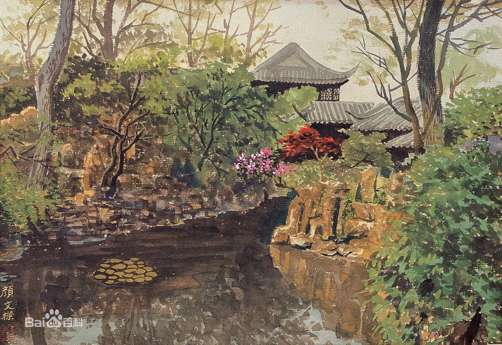 颜文樑(1893年7月2日-1988年5月1日),生于江苏苏州,中国著名画家,美术教育家,1911年入商务印书馆画图室学习西画,1922年与胡粹中、朱士杰创办苏州美术专科学校,1928年入法国巴黎高等美术专科学校,1932年回国,主持苏州美术专科学校的教学,1953 年后任中央美术学院华东分院副院长,浙江美术学院顾问,中国美术家协会顾问,出版有《颜文樑画集》、《油画小辑》、《欧游小品》及水彩画集《苏杭风景》等,著有《美术用透视学》、《色彩琐谈》等。
