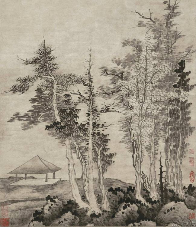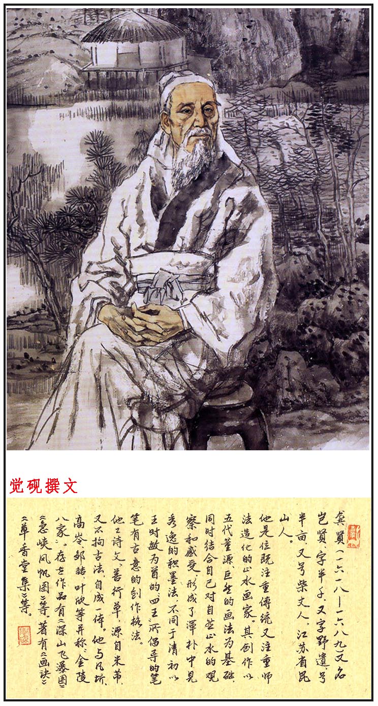 龚贤 [1] (1618—1689)明末清初著名画家,金陵八大家之一。又名岂贤,字半千、半亩,号野遗,又号柴丈人、钟山野老,江苏昆山人,流寓金陵(今南京市),早年曾参加复社活动,明末战乱时外出漂泊流离,入清隐居不出,他与同时活跃于金陵地区的画家樊圻、高岑、邹喆、吴宏、叶欣、胡慥、谢荪等并称“金陵八家”;与清初著名诗书画家吕潜并称“天下二半”(龚贤,字半千;吕潜,号半隐)。工诗文,善行草,源自米芾,又不拘古法,自成一体。著有《香草堂集》。