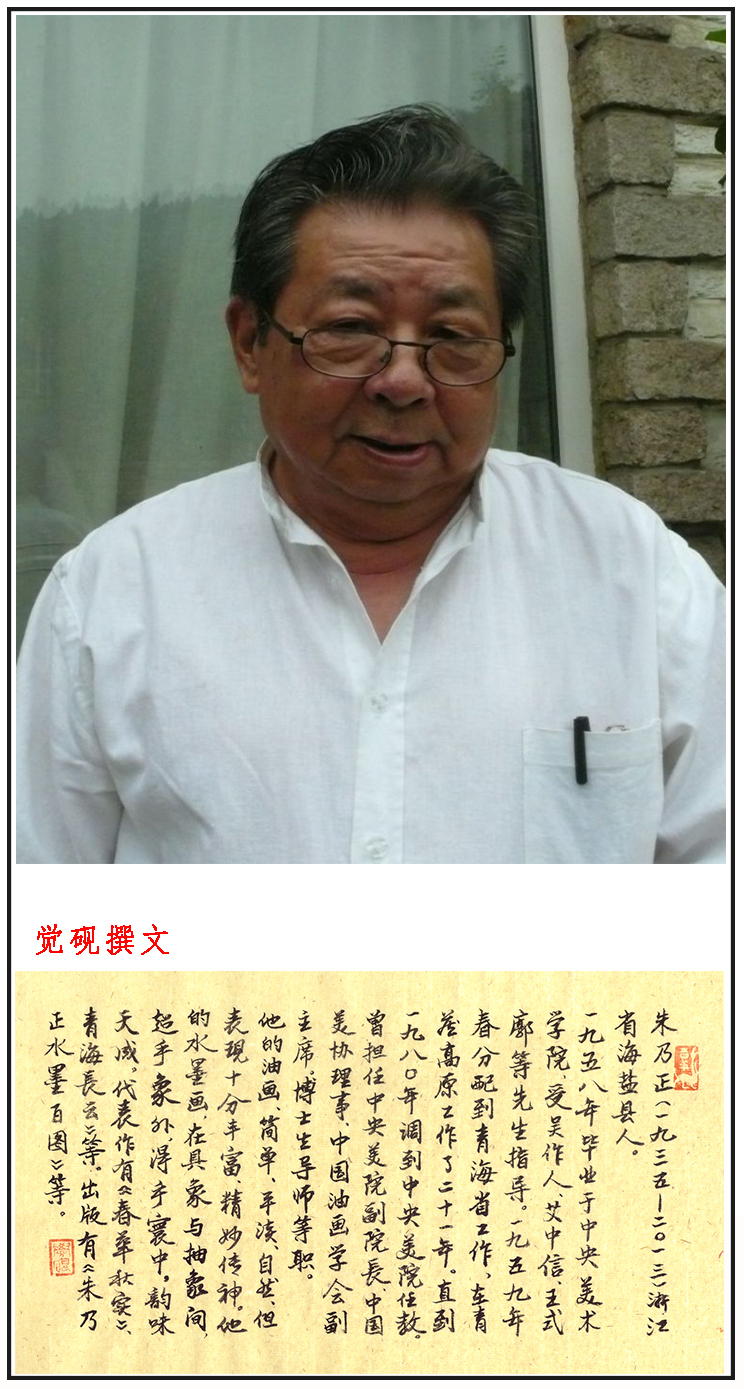 朱乃正,男,1935年11月生,浙江省海盐县人。中央美术学院教授。1958年毕业于中央美术学院,受吴作人、艾中信、王式廓等先生指导。1959年春分配到青海省工作,在青藏高原工作21年。期间历任青海省美术家协会副主席、青海省人大常委。1980年春调回中央美术学院任教。曾任中央美术学院副院长。现任中央美术学院学术委员会副主任,教授、研究生导师,中国美术家协会理事,油画艺术委员会主任。中国油画学会副主席,全国政协委员。