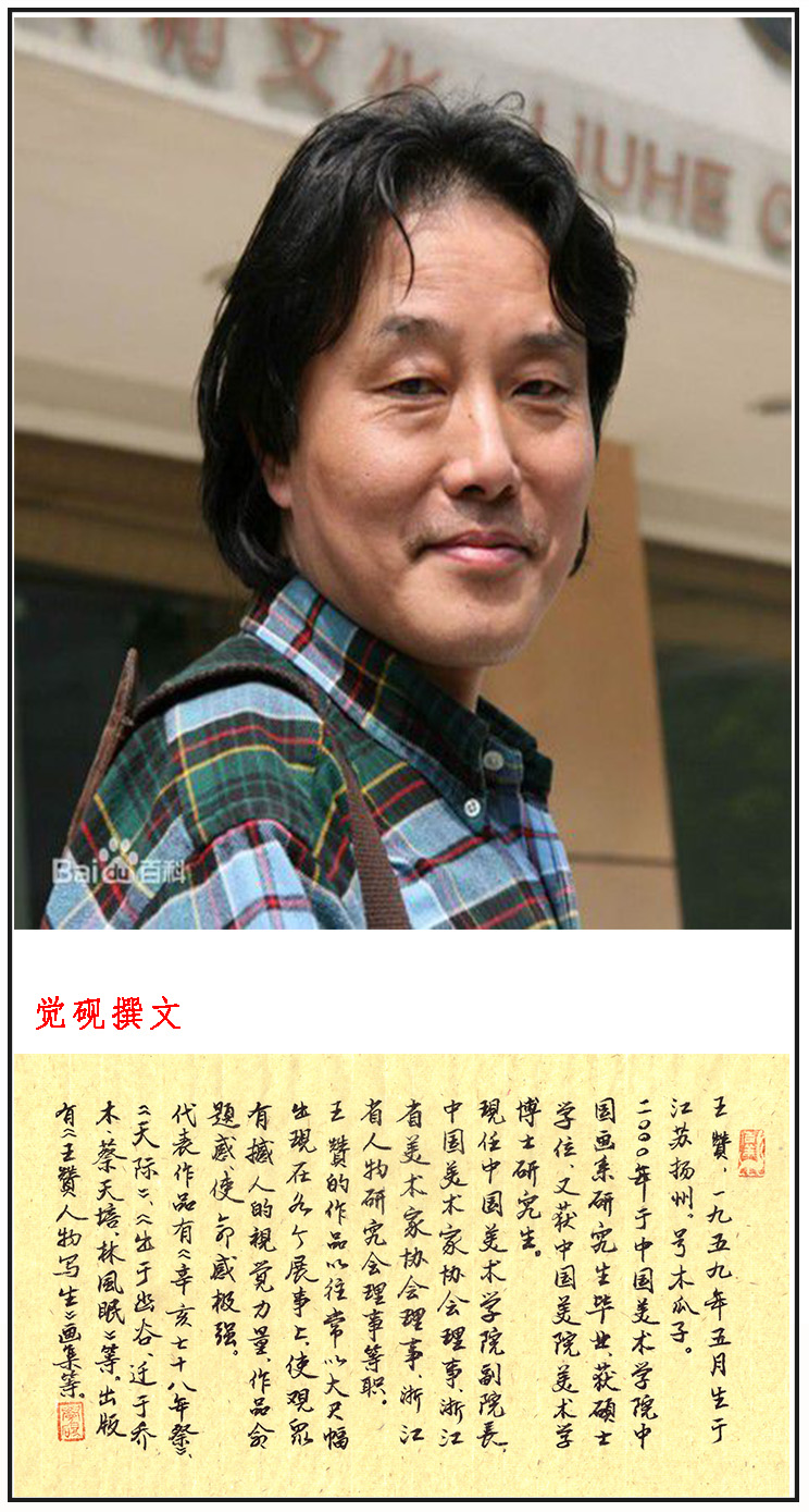 王赞 1959年5月生于江苏扬州2000年中国美术学院中国画系研究生毕业,获硕士学位。 2000级中国美术学院美术学博士研究生。现任中国美术学院副院长、中国美术学院中国画系副教授、中国美术学院中国画系副主任、中国美术家协会会员、浙江省美术协会理事、浙江省人物画研究会理事。