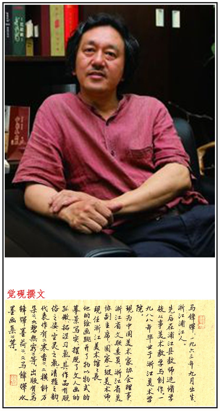马锋辉,1963年9月出生,浙江浦江人。现为中国美术家协会理事,浙江省文联委员,浙江省美术家协会副主 席,浙江画院特聘画师,国家一级美术师。现任浙江美术馆馆长。