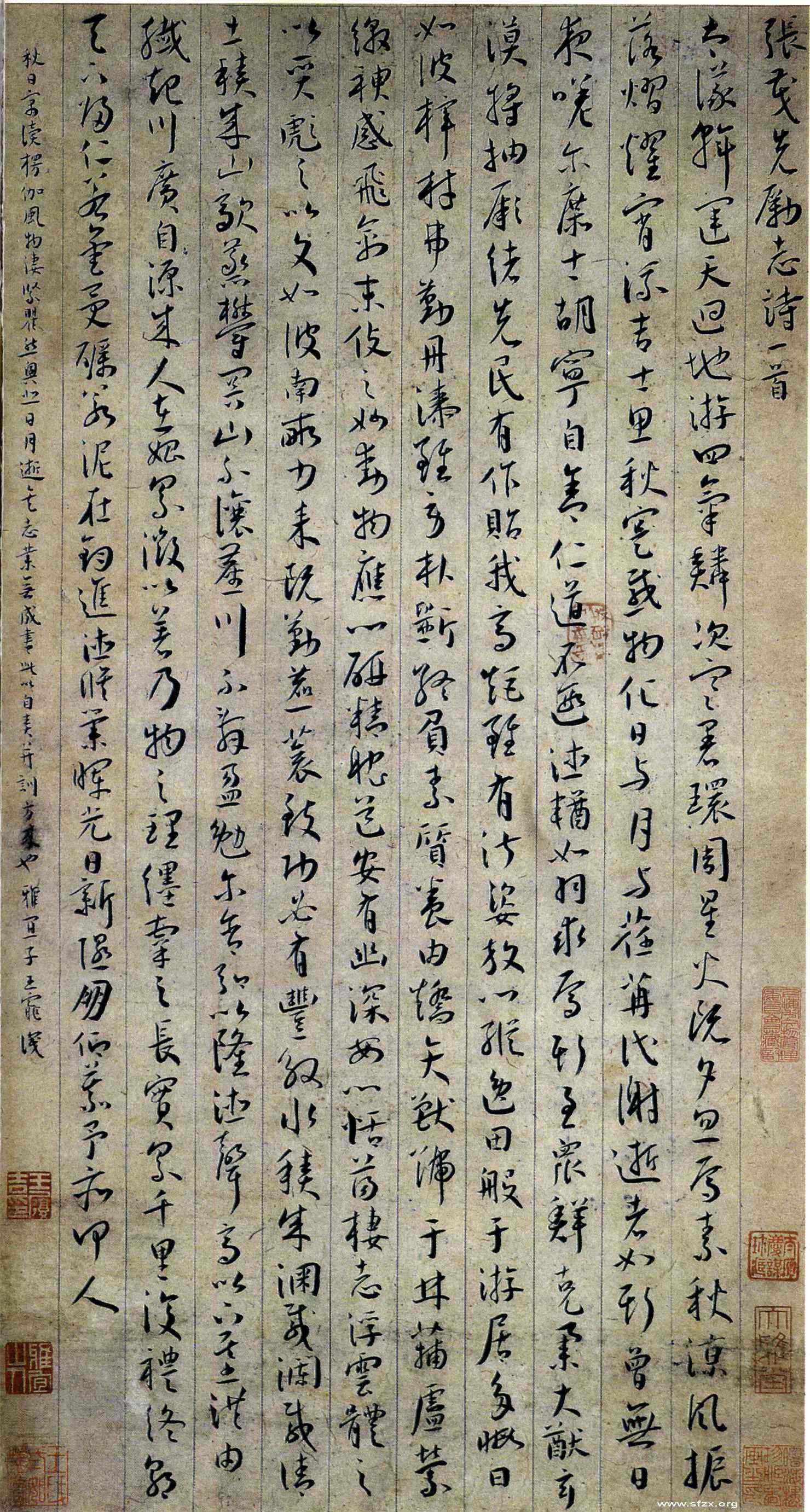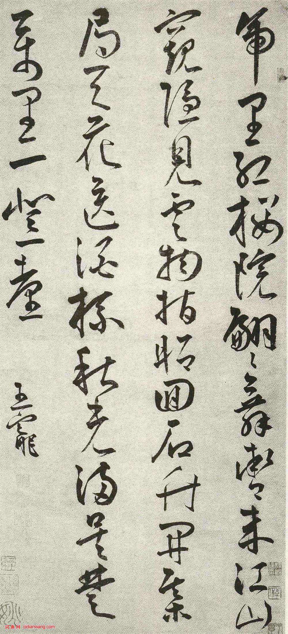 王宠(1494年--1533年),中国明代书法家。字履仁、履吉,号雅宜山人,吴县(今属江苏苏州)人。为邑诸生,贡入太学。王宠博学多才,工篆刻,善山水、花鸟,他的诗文在当时声誉很高,而尤以书名噪一时,书善小楷,行草尤为精妙。为明代中叶著名的书法家。著有《雅宜山人集》,传世书迹有《诗册》、《杂诗卷》、《千字文》、《古诗十九首》、《李白古风诗卷》等。