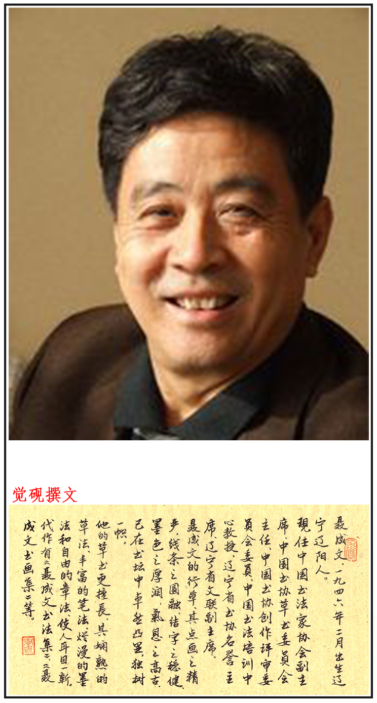 聂成文,男,汉族。1946年2月生于辽宁辽阳,1968年10月参加工作,1972年12月入党,汉族,中共党员。中国书协第四、五届、第六届副主席。现任中国书法家协会第六届副主席,中国书协草书委员会主任,中国书协创作评审委员会委员,全国中青年书法展评委会副主任,中国书法培训中心教授,辽宁省书法家协会名誉主席,辽宁省文联副主席,辽宁省文联书记处书记。