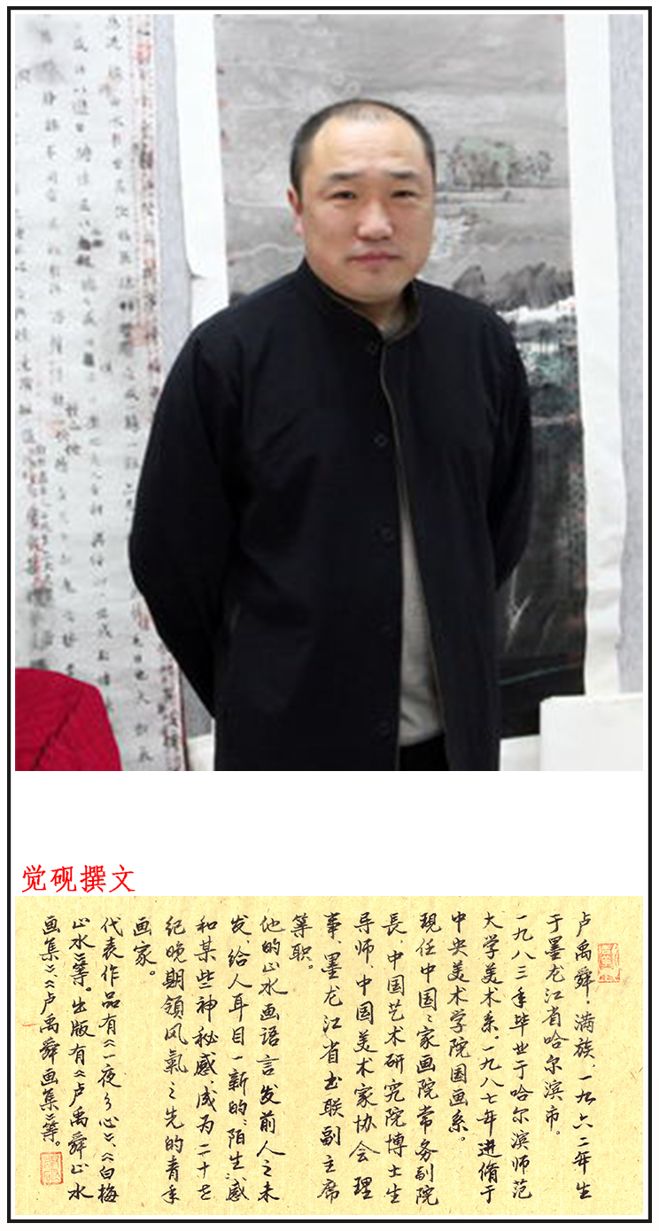 卢禹舜(1962 - ),现任中国国家画院常务副院长、院务委员、中国艺术研究院博士生导师、哈尔滨师范大学副校长、全国政协委员、中国美术家协会理事、中国画艺委会副主任、中国画学会副会长,第二届“全国中青年德艺双馨文艺工作者”、中宣部“四个一批”人才,有突出贡献优秀专家,享受国务院政府特殊津贴。