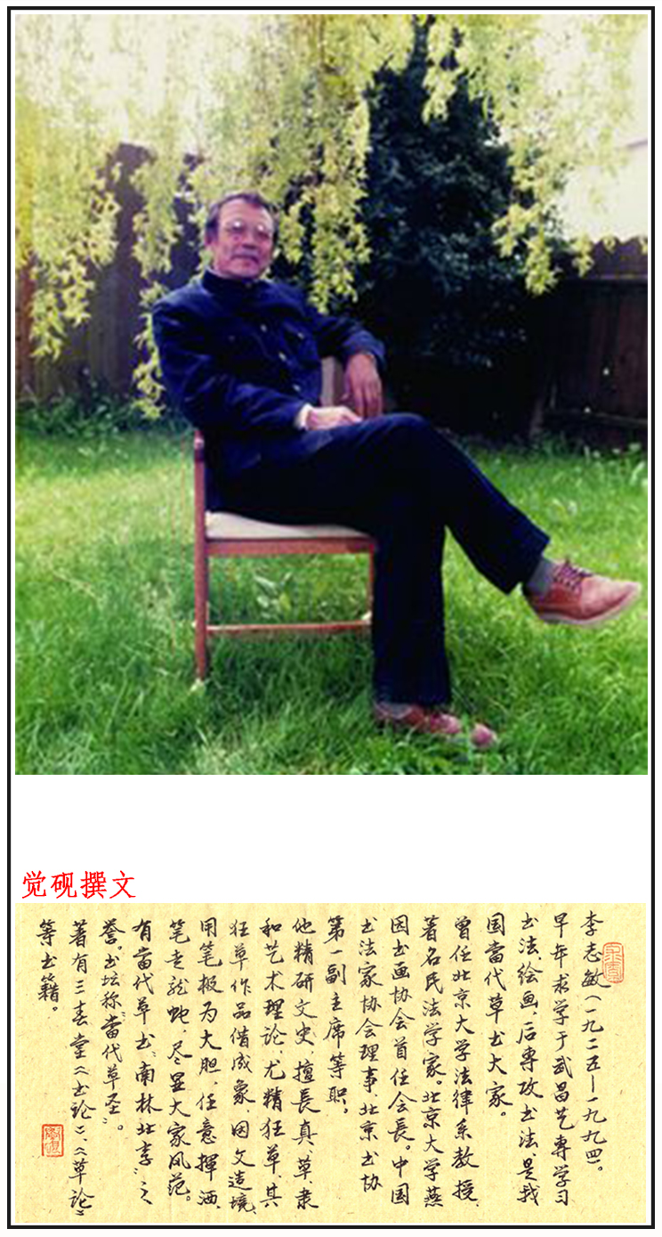 李志敏(1925—1994),北京大学法律系教授,著名民法学家,北京大学燕园书画协会(北京大学书画协会前身)首任会长。早年求学于武昌艺专学习书法、绘画,后专攻书法,是我国当代草书大家、改革开放时期著名书法理论家、中国书法家协会理事、中国书协艺委会副主任、北京书法家协会第一副主席。他精研文史,擅长真草隶和艺术理论,尤精狂草,著有三春堂《书论》、《草论》,是“引碑入草”的理论首创者和实践开创者。与沈尹默合称“北大书法史上两巨匠” [1] ,有当代草书”南林北李“(林散之、李志敏)之誉,与林散之并称“当代草圣”。