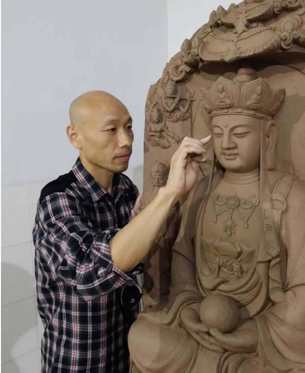 王东光,男,1972年生,河南镇平人,现任【河南省应汶玉文化研究院传习基地】设计师。高级工艺美术师,中国玉石雕刻大师,天工奖评委,非遗传承人。从事玉石雕刻三十年,酷爱玉石雕刻,擅长多种玉石创作,对造型艺术有着极高的悟性和理解能力。多年来对各种宗教的认识和研究,特别是对佛教造像的虔诚与敬畏,创作了一大批形、禅兼备的佛教水晶造像。