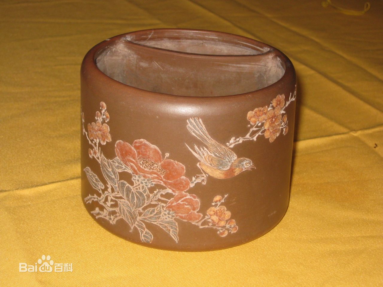 谈尧坤:(1920-1991) 艺名:一尘·岩生·省三,和泰·赋新·研陶,研深,晚年有了孙子以后常用子旻。紫砂陶刻名师·宜兴潜洛人·谈尧坤自幼喜书法,习绘画,人聪慧,悟性高,个性强,事业执着,较有文化底子·15岁拜著名陶刻艺人陈少亭为师,勤学苦练·艺成后,受聘于[铁画轩陶器厂],取艺名为一尘,以山水,花卉装饰为主,揩书,隶书均见功底,行草亦用·