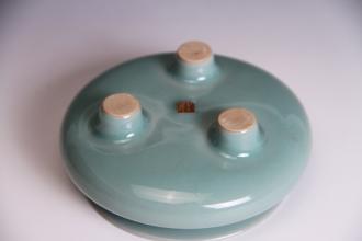 张寿勇1984年出生于浙江龙泉市,成长于古窑产区的他,从小就受前辈言传身教,耳濡目染,各个时代的器形、各种釉色,早已随岁月年华过往融入到了血液当中。刚入行时,他每做一个器具,都会与古器比较,数次比较后,难以跨越的美学差距,让他深深震撼于宋代青瓷的审美高度。为实现传承开拓龙泉青瓷梦想,他无数次走进古窑址,拜师龙泉窑古胎釉专家杨孔星,从古瓷片、标本样中汲取精髓,尊古、学古、仿古,反复、疯狂试验上千次不同的釉色配方、器形修正……,终于,历经5年的不间断探索,试验出数个古釉色配方,且越来越接近宋代青瓷的胎釉技术,在青瓷学古领域中小有成就。