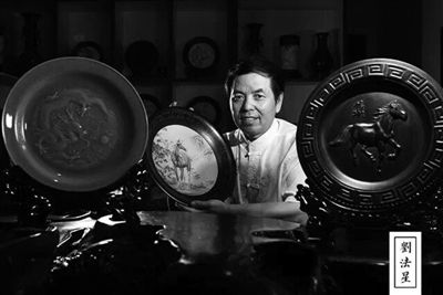 刘法星,男,1959年出生于浙江省松阳县。现为中国陶瓷艺术大师,浙江省工艺美术大师,师从中国工艺美术大师徐朝兴。至今已从艺三十多年,从民间手工艺边做边学自学成长,到精通水彩工笔绘画、根雕、木雕、动物、人物、山水、花鸟、雕刻、雕塑、油彩绘画、雕梁画栋、墙上画画,成为处州古窑青瓷文化的创研一代传人。