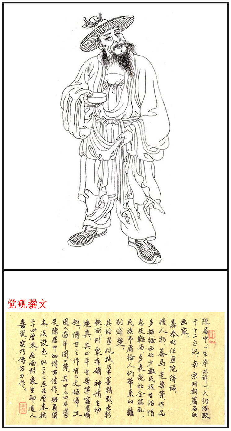 陈居中,南宋时期著名画家,擅人物、蕃马、走兽等,作品多描绘西北少数民族生活情态及鞍马,多表现社会混乱、民族矛盾给人们带来的离别痛楚。中国南宋画家。生卒年不详,活跃于12世纪。嘉泰时任画院待诏。笔墨精致,色彩艳丽,形象准确,神情生动逼真。其山羊走兽等亦富有情趣。有《文姬归汉图》、《四羊图》等传世作品。