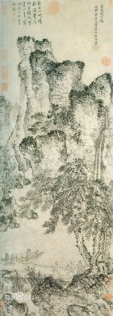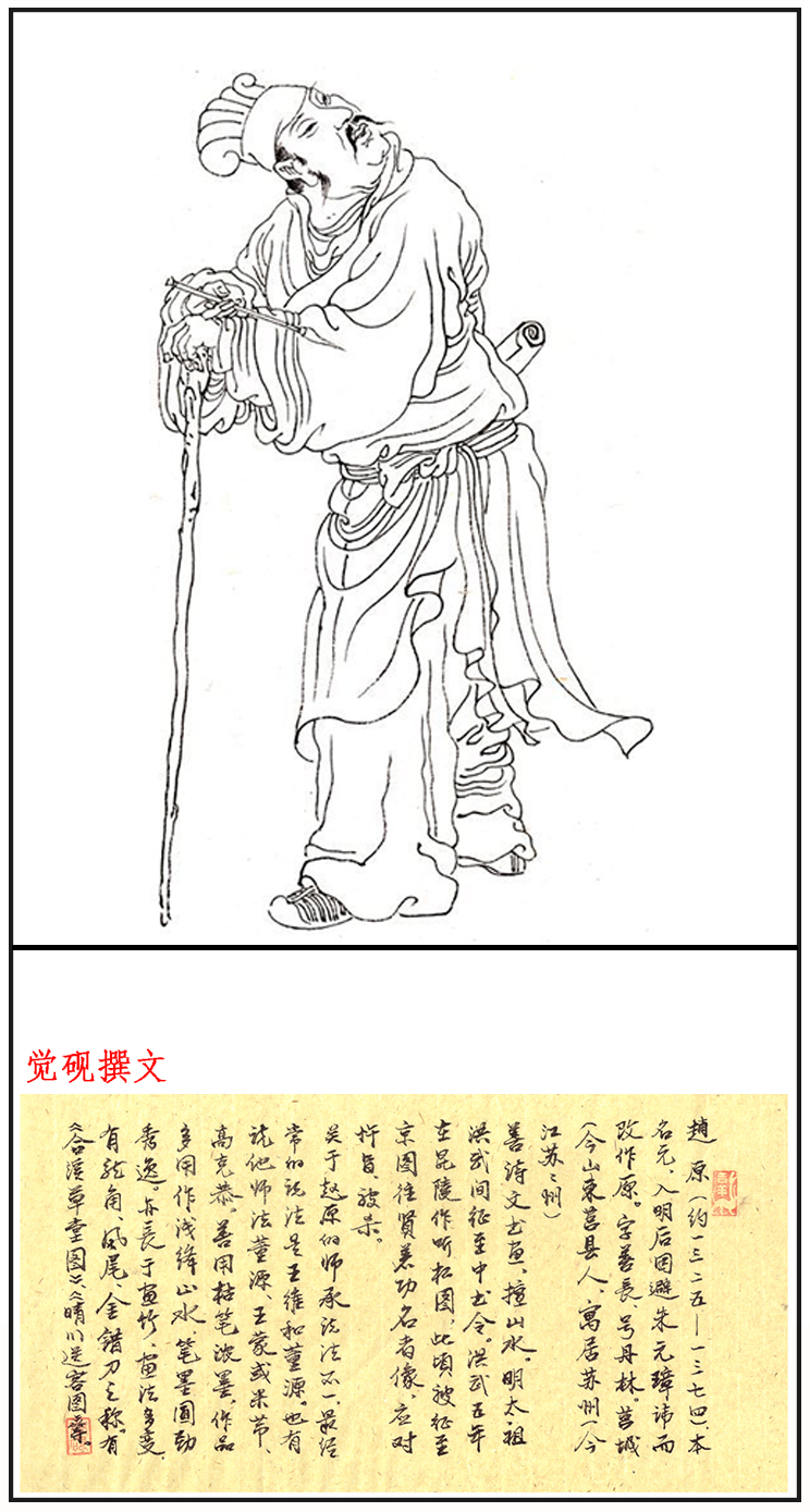 赵原,中国元末明初画家。生卒年不详。本名元,入明后因避朱元璋讳而改作原,字善长,号丹林。莒城(今山东莒县人,一作东平(今属山东)人,)寓居苏州(今江苏苏州)。善诗文书画,明洪武初奉诏入宫,因所画不称旨而被杀。擅山水,师法董源、王蒙,作品多作浅绛山水,笔墨圆劲秀逸。亦长于画竹,画法多变,有龙角、凤尾、金错刀之称。有《合溪草堂图》、《晴川送客图》、《溪亭送客图》、《陆羽烹茶图》等传世。