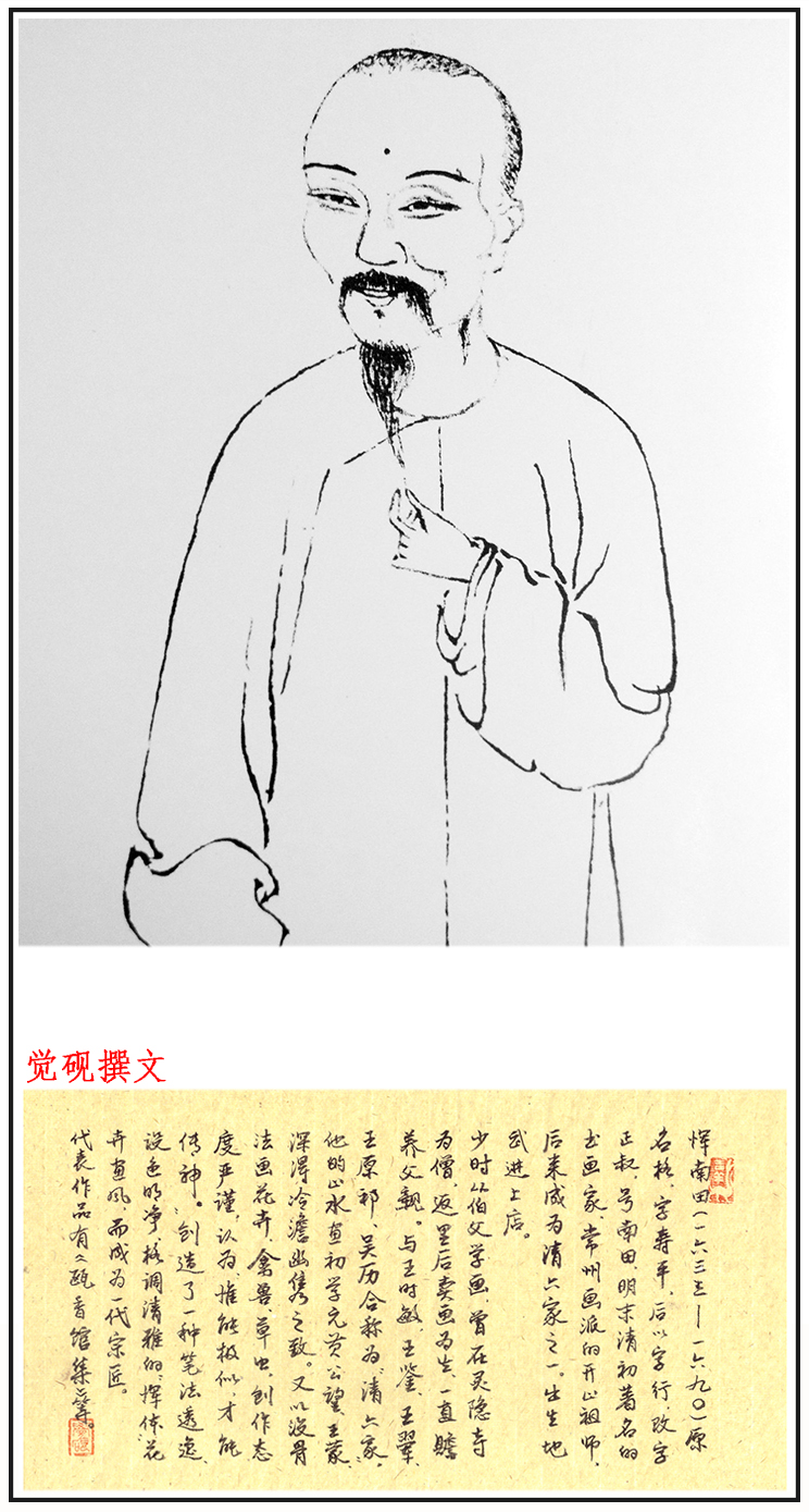 恽南田(1633-1690),原名格,字寿平,后以字行,改字正叔,号南田,明末清初著名的书画家,常州画派的开山祖师,后来成为清六家之一。别号云溪外史,晚居城东,号东园草衣,后迁居白云渡,号白云外史 [1] 。他是明末清初著名的书画家,开创了没骨花卉画的独特画风,是常州画派的开山祖师。他一生生活在民族矛盾极其尖锐的时代。少时从伯父学画,青少年时期参加过抗清义军,家破人亡,当过俘虏,又被浙闽总督收为义子,曾在灵隐寺为僧,返里后卖画为生,一直赡养父亲。与王时敏、王鉴、王翚(hui)、王原祁、吴历合称为“清六家”,他山水画初学元黄公望、王蒙,深得冷澹幽隽之致。又以没骨法画花卉、禽兽、草虫,自谓承徐崇嗣没骨花法。创作态度严谨,认为“惟能极似,才能传神。”“每画一花,必折是花插之瓶中,极力描摹,必得其生香活色而后已” [2] 。他画法不同一般,是“点染粉笔带脂,点后复以染笔足之”,创造了一种笔法透逸,设色明净,格调清雅的“恽体”花卉画风,而成为一代宗匠。对明末清初的花卉画有“起衰之功”,被尊为“写生正派”,影响波及大江南北,史载:“近日无论江南江北,莫不家家南田,户户正叔,遂有‘常州派'之目”。