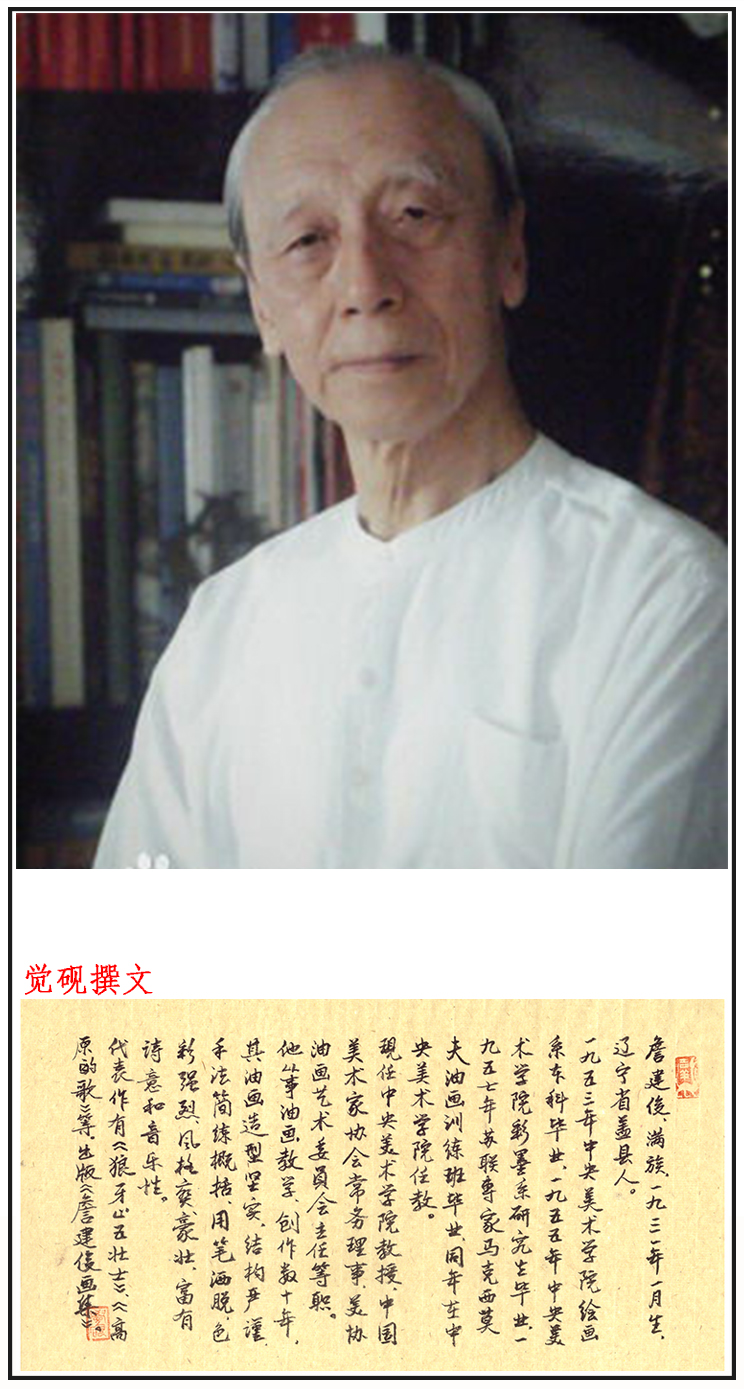 詹建俊,男,满族,1931年1月生,辽宁省盖县人,中央美术学院教授、博士生导师、学术委员会顾问,中国油画学会主席,中国美术家协会顾问,欧洲人文艺术科学院客座院士。1953年中央美术学院绘画系本科毕业,1955年中央美术学院彩墨系研究生毕业,1957年苏联专家马克西莫夫油画训练班毕业,同年在中央美术学院任教。曾任中国人民政治协商会议第八、九届全国委员,中国美术家协会副主席,1986年被国务院授予有突出贡献专家称号。