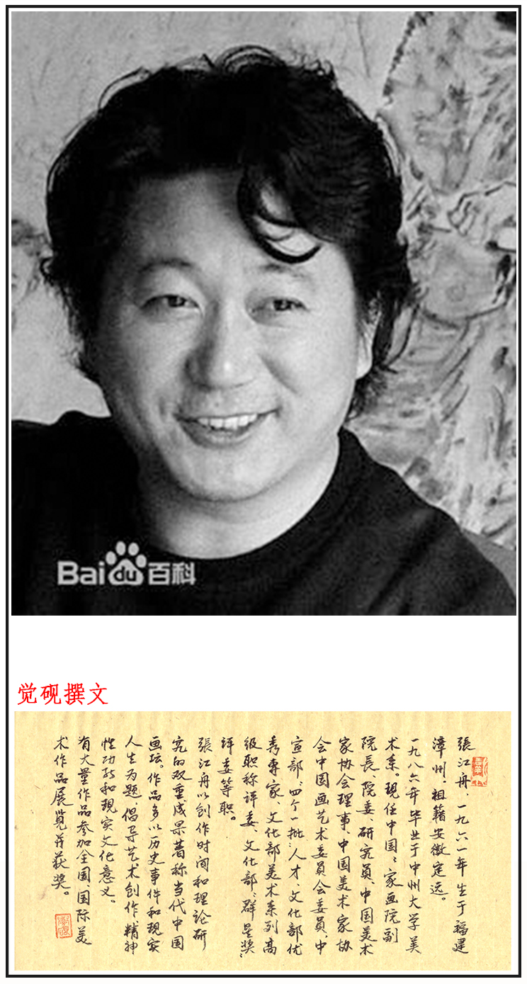 张江舟,男,1961年生于福建漳州,祖籍安徽定远。1986年毕业于中州大学美术系。中国国家画院副院长、研究员,中国美术家协会理事,《水墨》主编,中国国家画院艺术交流中心主任。作品入选第八届全国美展,日中水墨合同展,首届全国人物画展并获优秀奖,全国首届国画家学术邀请展获国画家奖,中国当代杰出中青年国画家新作展,水墨延伸--中国人物肖像作品展,中国当代绘画展,水墨本色--当代中国画邀请展等。已出版个人画集、专著多部。