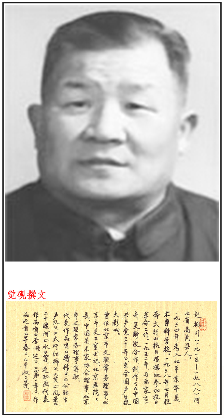 赵枫川,(1915.8—1988.10)。河北省高邑县人。擅长中国画。1936年在京华美专学习。历任太行山文联干部、北京市文联副秘书长、北京画院院长、北京市文化局副局长、中国美术家协会北京分会副主席。