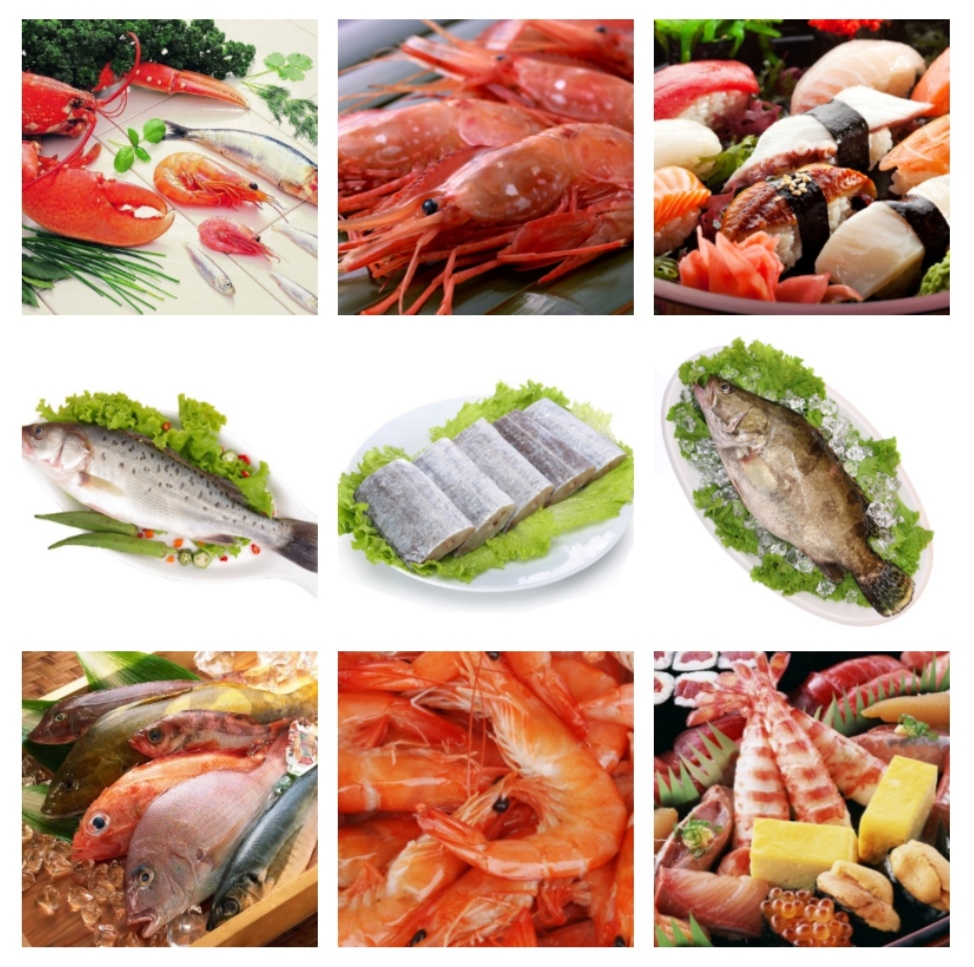 3   水产类:带鱼、黄鱼、鲳鱼、黑鱼片、鸦片鱼头、目鱼花、章鱼段、虾、蟹......