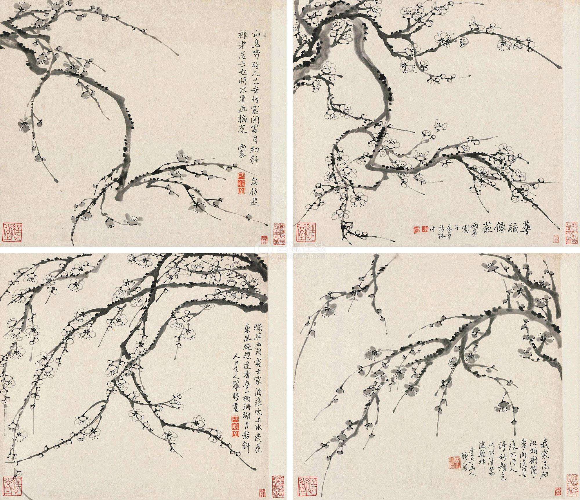 人物、佛像、山水、花果、梅、兰、竹等,无所不工,笔调奇创,超逸不群,别具一格。善画《鬼趣图》,画鬼态无不极尽其妙,借以讽世。亦善刻印,著有《广印人传》。金农死后,他搜罗遗稿,出资刻版,使金农的著作得以传于后世。其妻方婉仪,字白莲,亦擅画梅兰竹石,并工于诗。子允绍、允缵,均善画梅,人称“罗家梅派”。