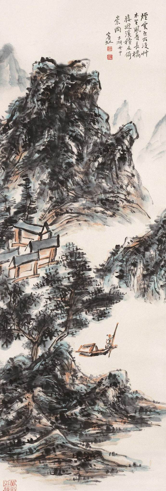 近现代画家,擅画山水,为山水画一代宗师。六岁时,临摹家藏的沈庭瑞(樗崖)山水册,曾从郑珊,陈崇光等学花鸟。精研传统与关注写生齐头并进,早年受“新安画派”影响,以干笔淡墨、疏淡清逸为特色,为“白宾虹”;八十岁后以黑密厚重、黑里透亮为特色,为“黑宾虹”。他的技法,得力於李流芳、程邃,所作重视章法上的虚实、繁简、疏密的统一;用笔如作篆籀,洗练凝重,遒劲有力,在行笔谨严处,有纵横奇峭之趣。所谓“黑、密、厚、重”的画风,正是他显著的特色。
