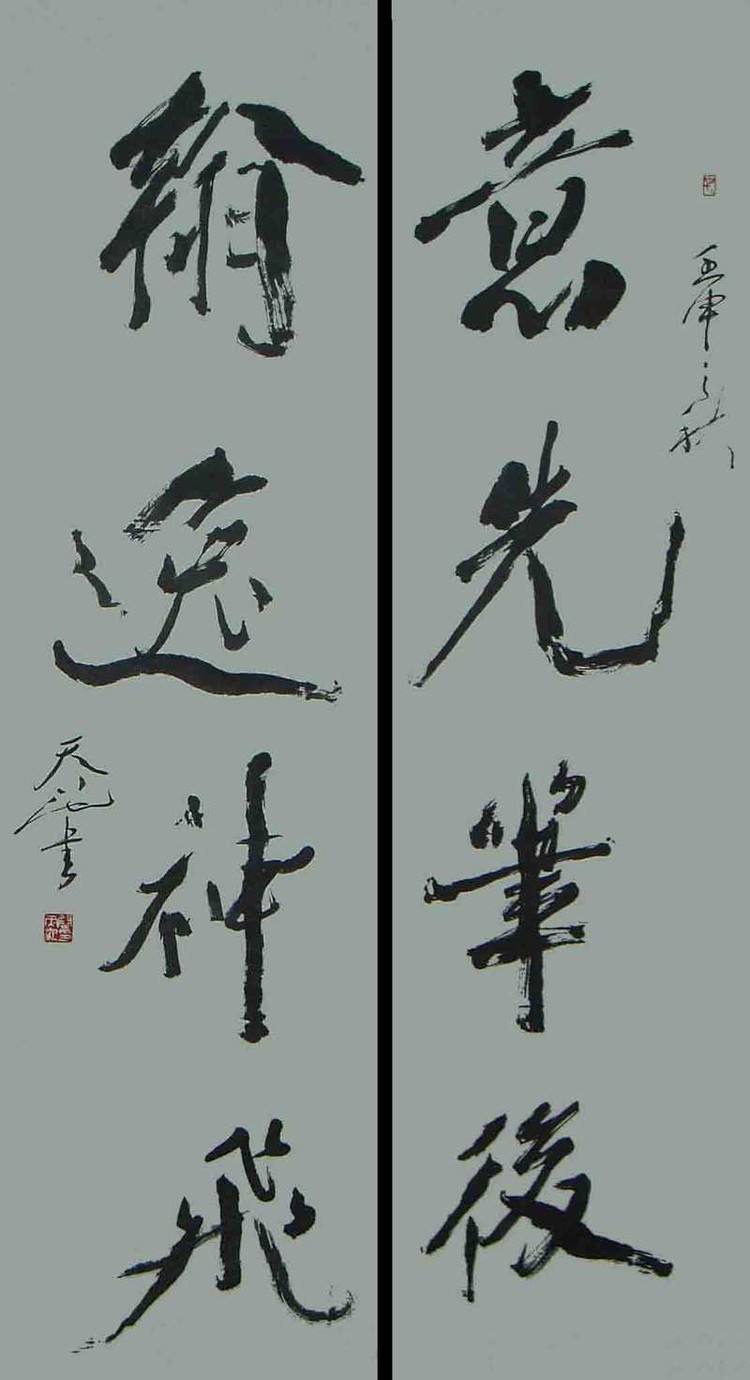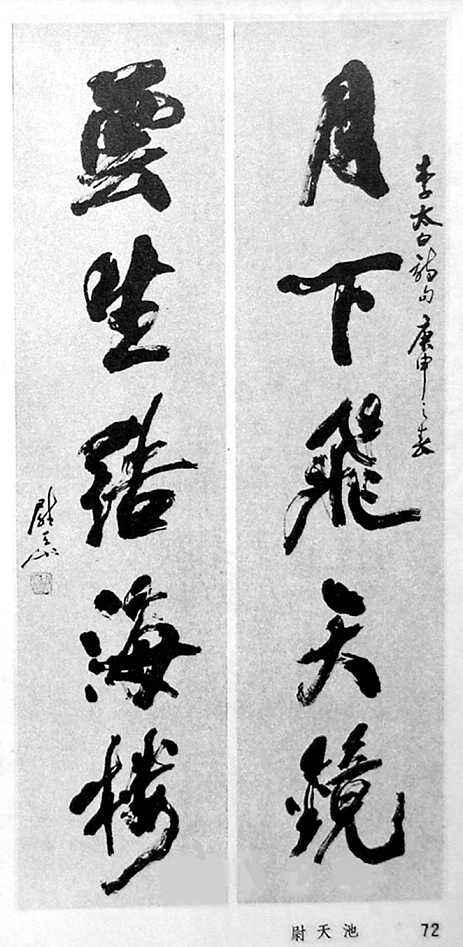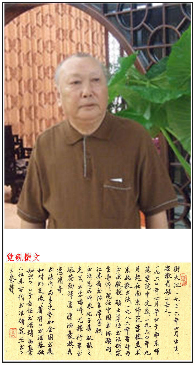 尉天池(1936.4-)安徽省砀山县人。中共党员,1960年7月毕业于南京师范学院中文系,1960年9月起,在南京师范学校(今南京师范大学)美术系执教书法,1986年4月晋升为书法教授。曾任日本文部省1986年度特聘书法教授,执教于国立爱知教育大学书法系。1985年起,任硕士学位书法研究生导师、日本书法留学生导师。先后师承沈子善、林散之先生。书学篆、隶、草、楷、行诸体,尤擅行草,书风苍劲浑厚,潇洒豪放,秀逸清奇。书作曾多次参加全国书展和对外交流展。现为中国书法家协会顾问、江苏省书法家协会主席。