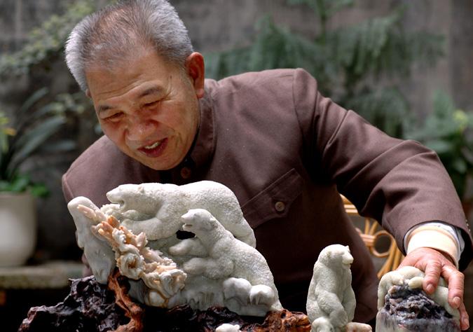 林亨云(1930- 2018),男,福建福州人,现为中国工艺美术大师、国家高级工艺美术师。中国寿山石雕刻大师。中国工艺美术研究院文化艺术市场研究中心研究员、中国工艺美术学会会员、福建省寿山石文化艺术研究会顾问。2018年4月22日,因病医治无效在福州逝世,享年88岁。林亨云的石雕工艺上尤其擅长刻熊,他创作的熊或坐、或爬、或嬉戏、或逐食,逗人可爱,不但形似,而且富有人格化情感,尤其在茸茸熊毛的表现上有他的独到之处。用林老本人的话说,熊身上的毛是千变万化的,各个部位的毛深浅不同、纹理不同、走向不同、疏密不同,这些都要认真表现。林亨云的熊雕作品有着强烈的空间感和生命力,给观者以强烈震撼力。其熊雕作品多次在全国各种大展中获奖。