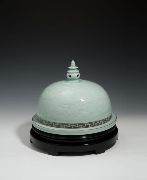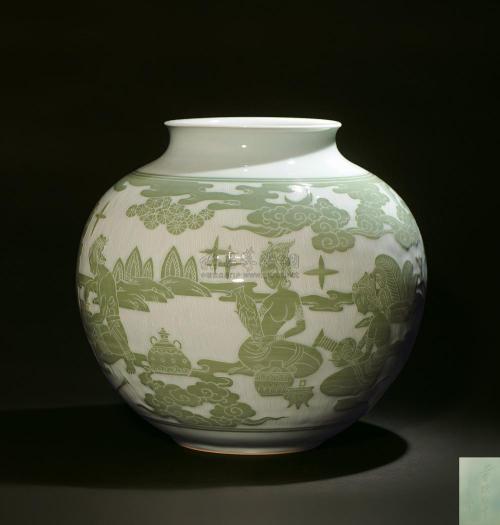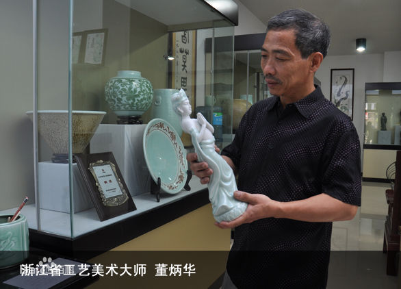 董炳华,1952年出生于浙江青田石雕世家,1973年毕业于中国美院雕塑系。现为浙江省工艺美术大师,高级工艺美术师,中国民间艺术大师,省优秀工艺美术专业技术人员,省青瓷协会理事。曾任龙泉艺术瓷厂厂长,龙泉青瓷研究所所长,现任龙泉神艺雕塑瓷厂厂兼总技术师。从事青田石雕、大型雕塑、青瓷艺术研究与创作43年,为青瓷行业设计创作新产品1千余件(套)。他的青瓷人物造型是当前龙泉同行业中达到最高水平者之一,得到同行、专家、收藏爱好者的一致认可。